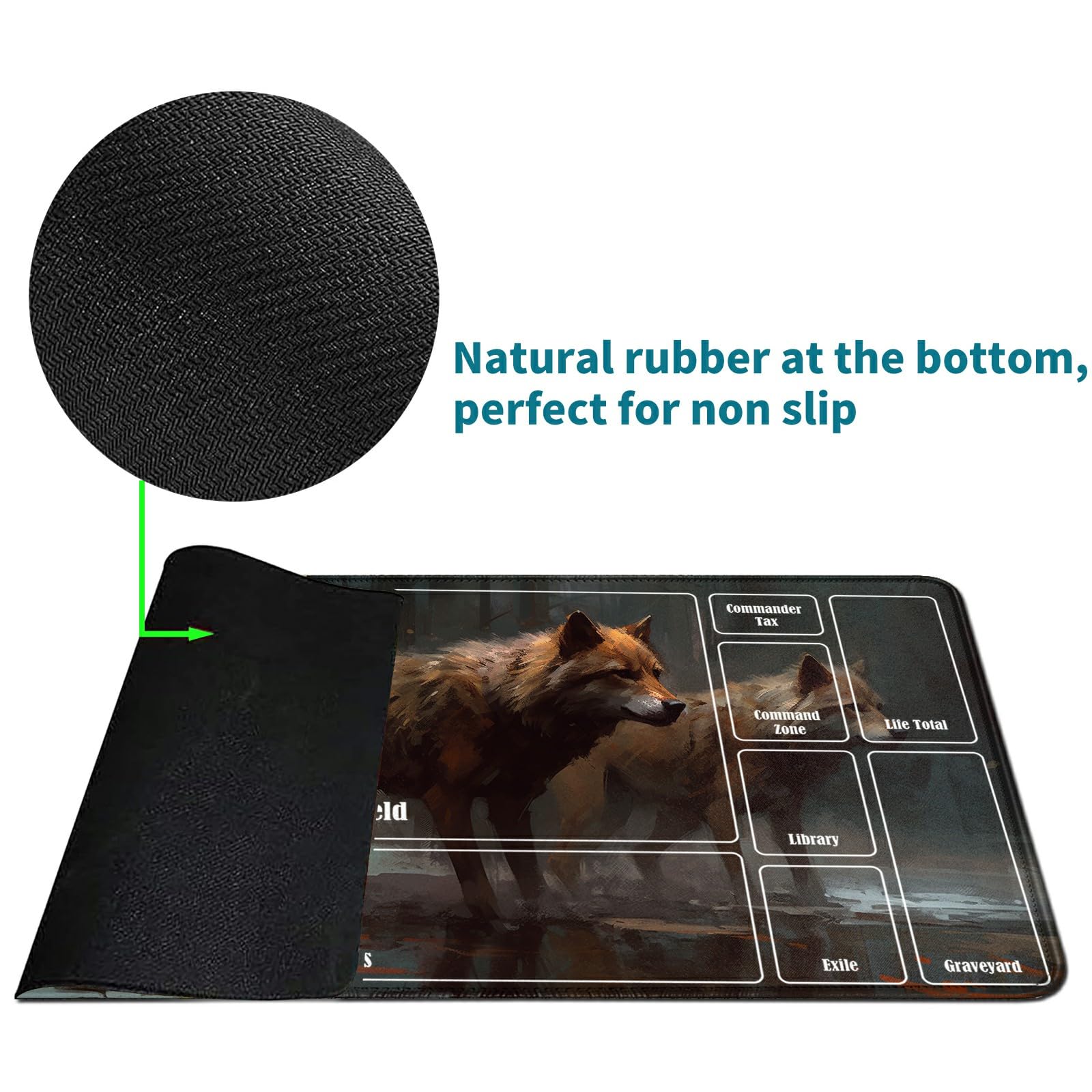 Rwutytiul Two Wolves Card Playmat 24 X 14 Inch With Tube Bag, Card Gameplay Playmat With Zones Commander Deck Board Mtg Rpg Ccg