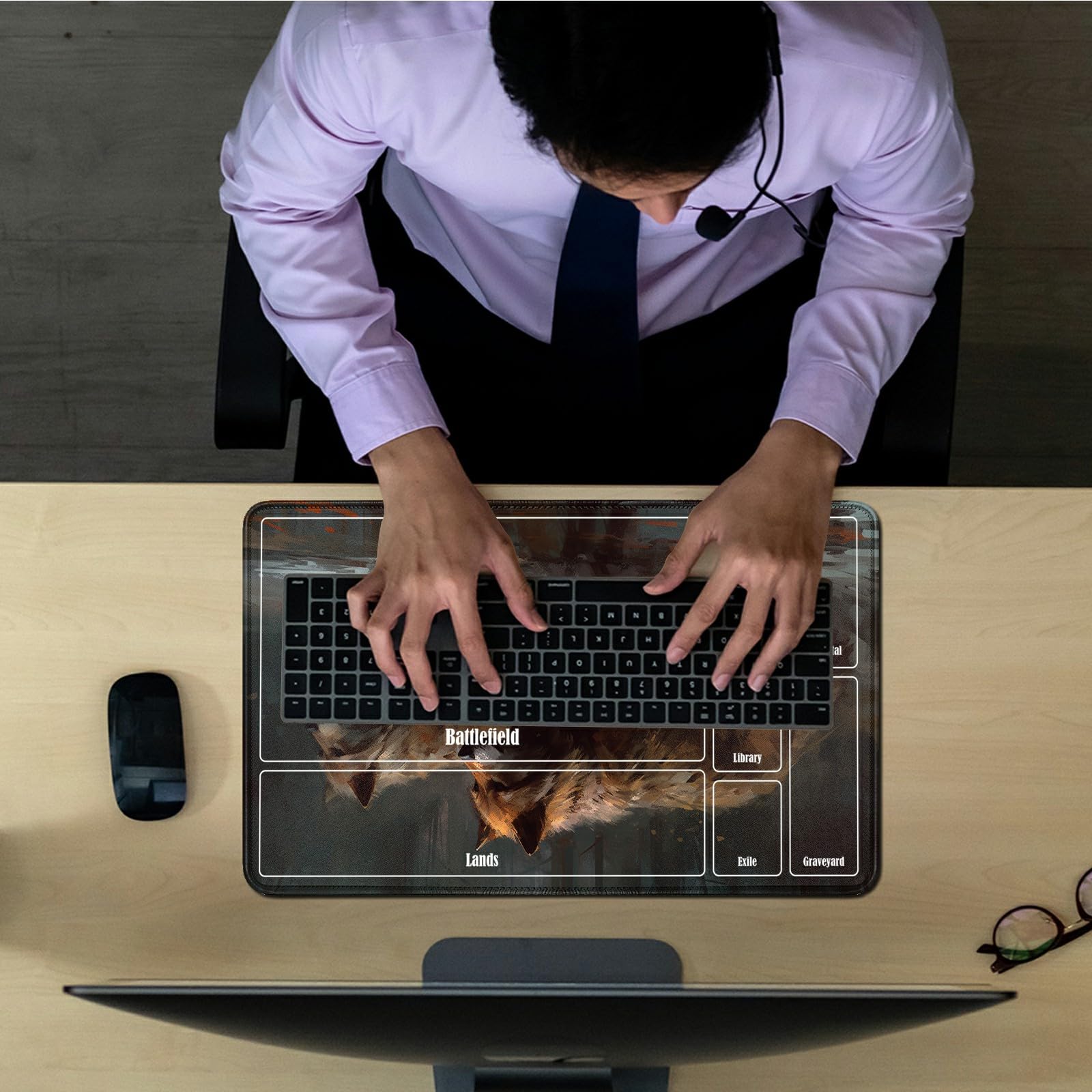 View compareRwutytiul Two Wolves Card Playmat 24 X 14 Inch With Tube Bag, Card Gameplay Playmat With Zones Commander Deck Board Mtg Rpg Ccg