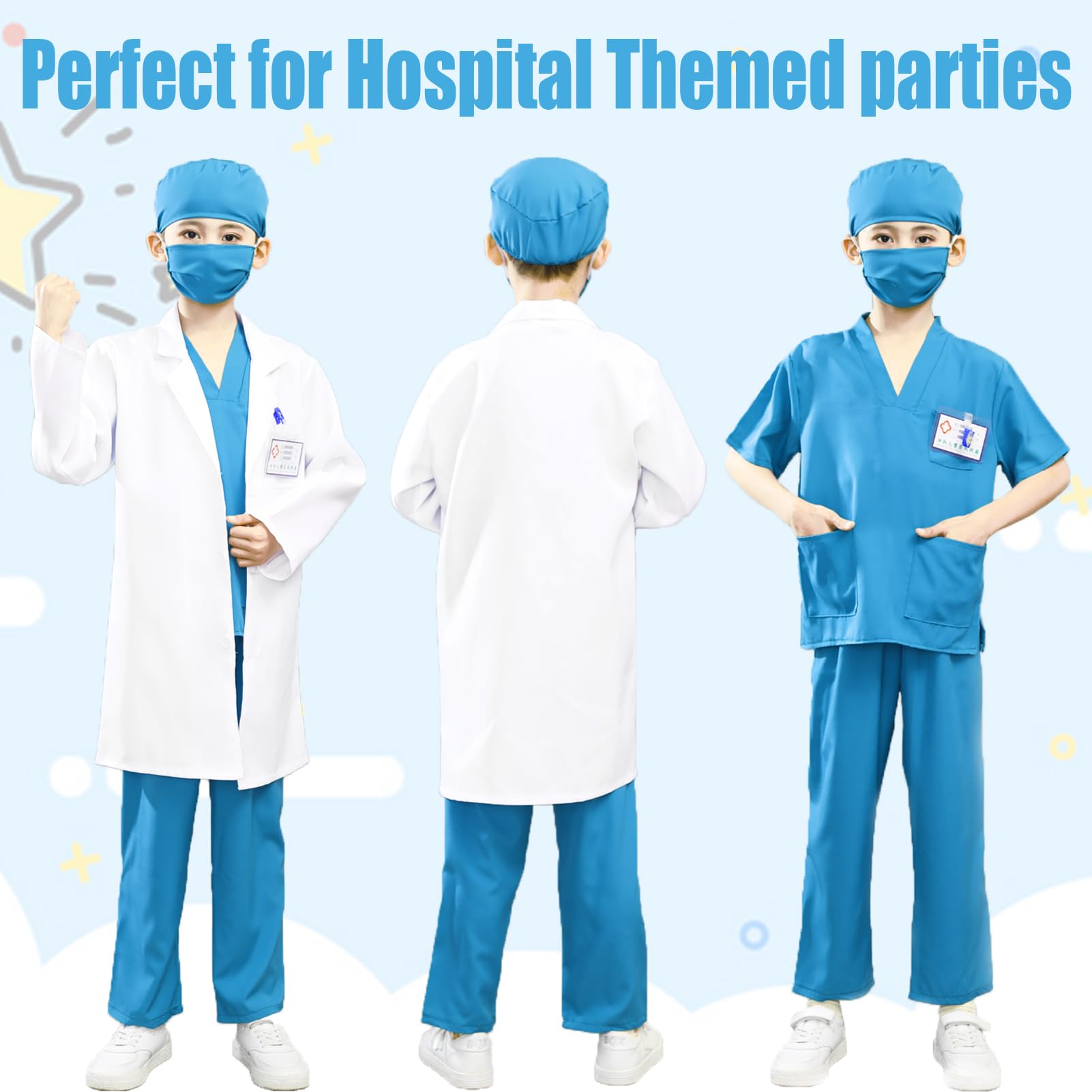 S3Xy-Fiv5 Kids Nurse Costume Doctor Costume Dentist Costume For Kids Play House Pretend Play Dress Up Party Blue 10-12 Yrs 160Cm