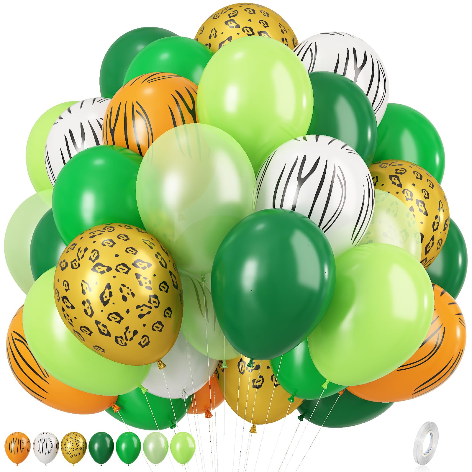 - Q: How many balloons are included in the pack? A: The pack includes a total of 35 balloons: 6 fruit green, 6 dark green, 6 standard green, 5 pearl green, 4 Tiger print, 4 Zebra print, and 4 Leopard print balloons, along with one balloon ribbon for your decorating convenience.