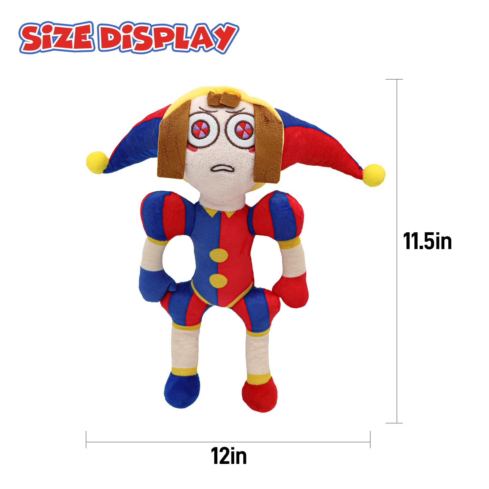 - Q: How big is the SAJISP Pomni Plush? A: The SAJISP Pomni Plush measures approximately eleven point eight inches in height. This size makes it a perfect option for cuddling or display.