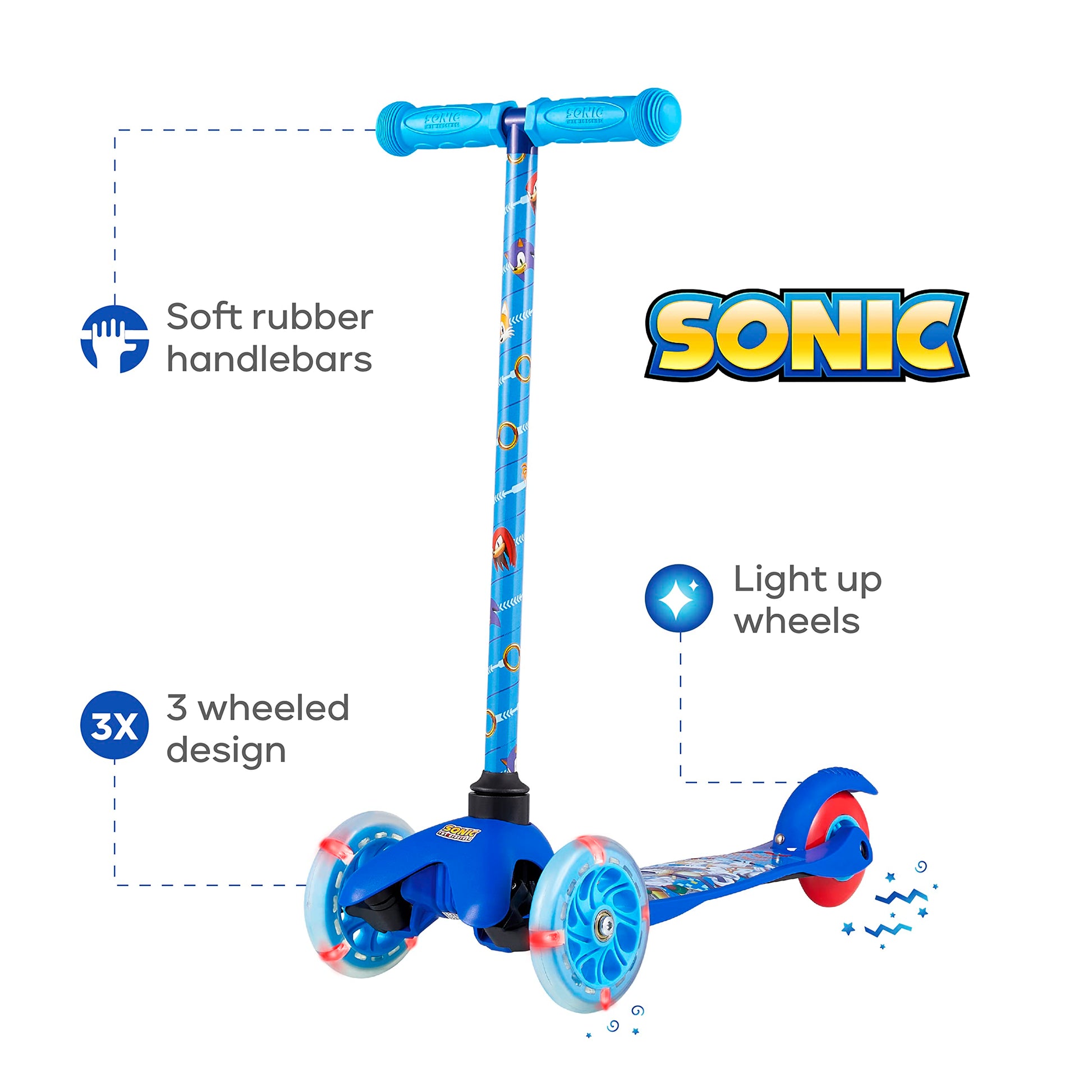 Sakar Sonic The Hedgehog Light Up Self Balancing Scooter For Kids - 3 Wheeled Scooter With Extra Wide Anti-Slip Deck, Rear Brake, Lean To Steer, Lightweight Design, For Boys/Girls 3 & Up, 75 Lb Limit