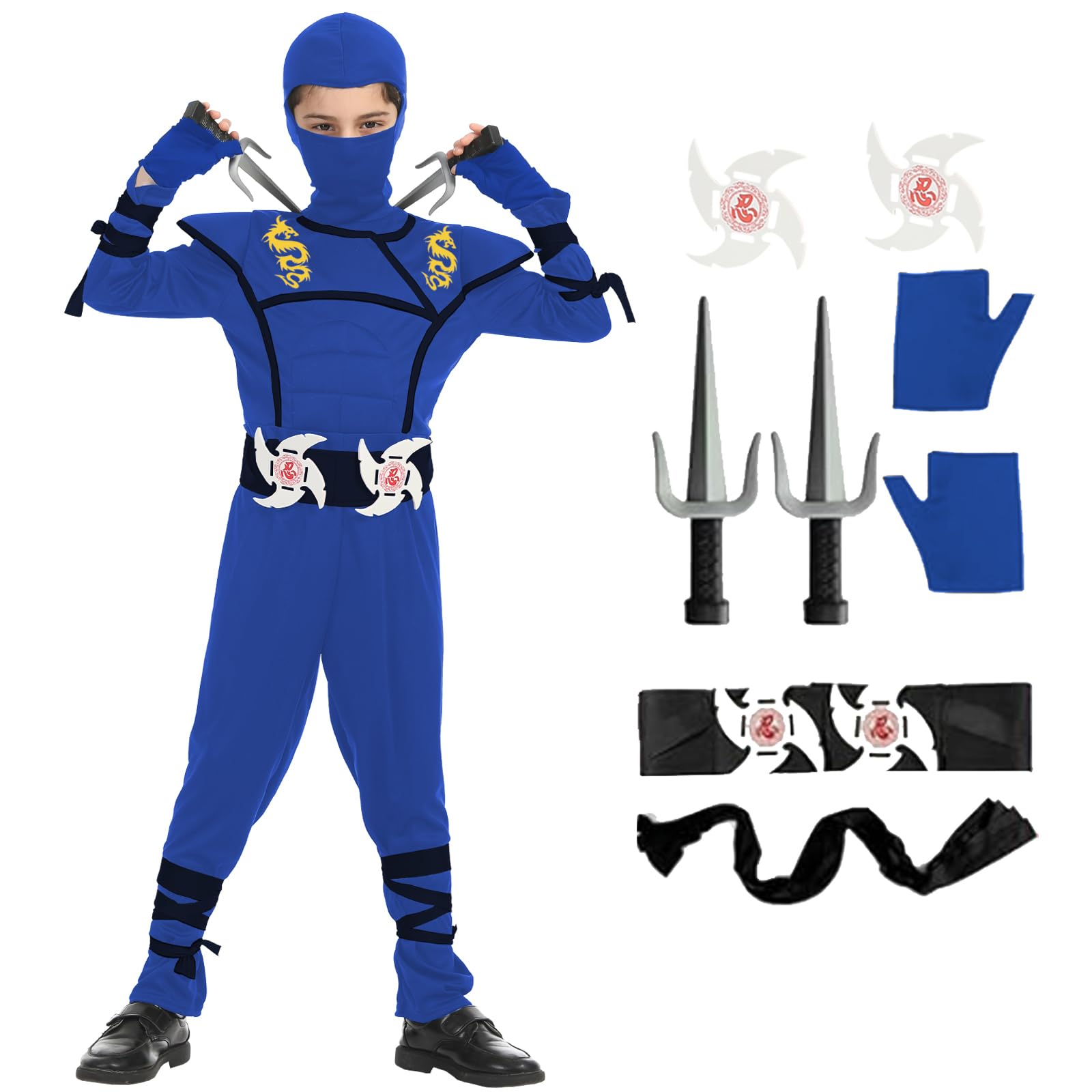 Satkull Ninja Costumes Halloween Ninja Costume For Kids Dragon Ninja Costumes Set Halloween Role Play Costume For Boys(Kids-Xl-10/12T Blue)
