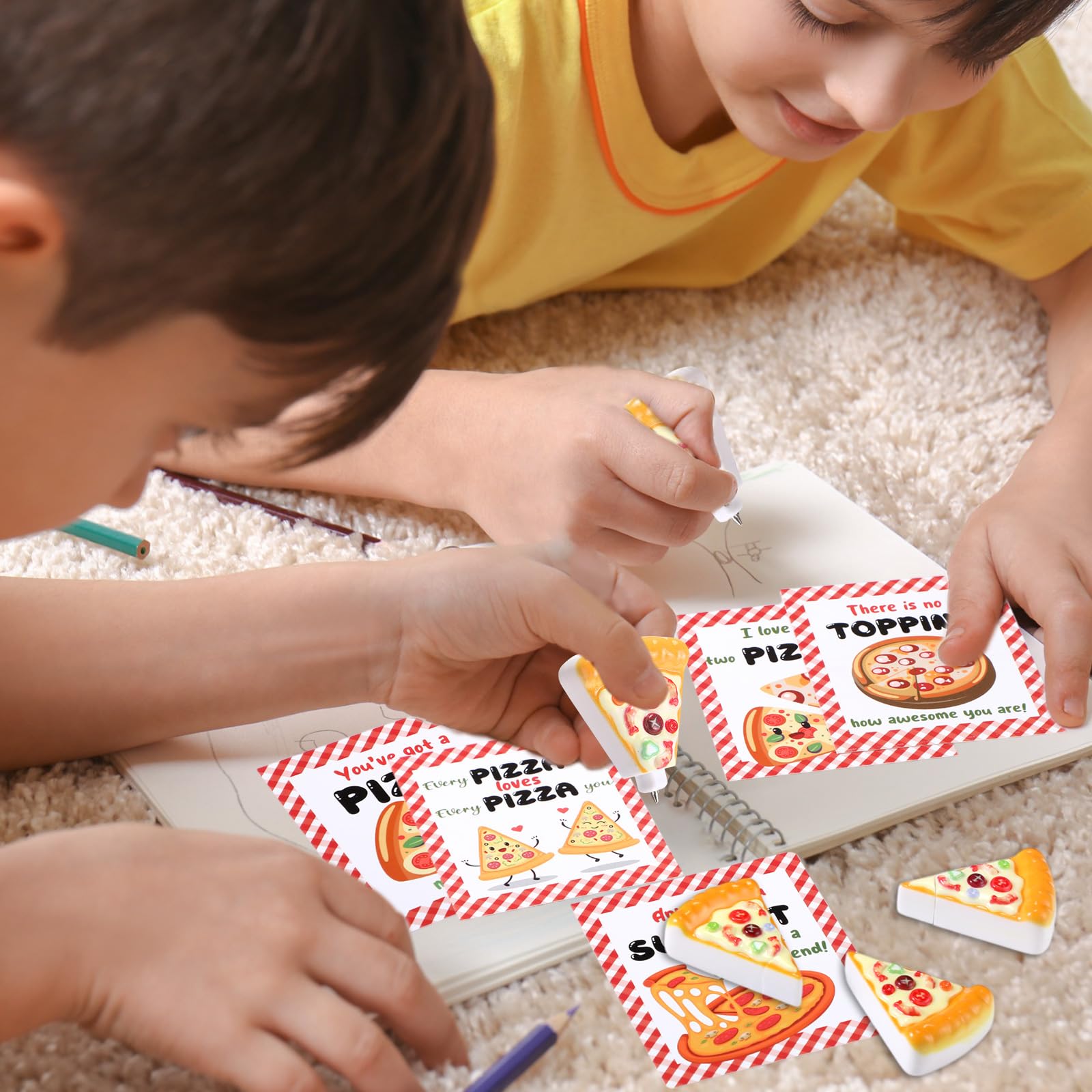 Saypacck 30 Pack Valentines Day Gifts with Mini Pizza Pens Valentine Cards Pizza Party Favors for Gifts Exchange