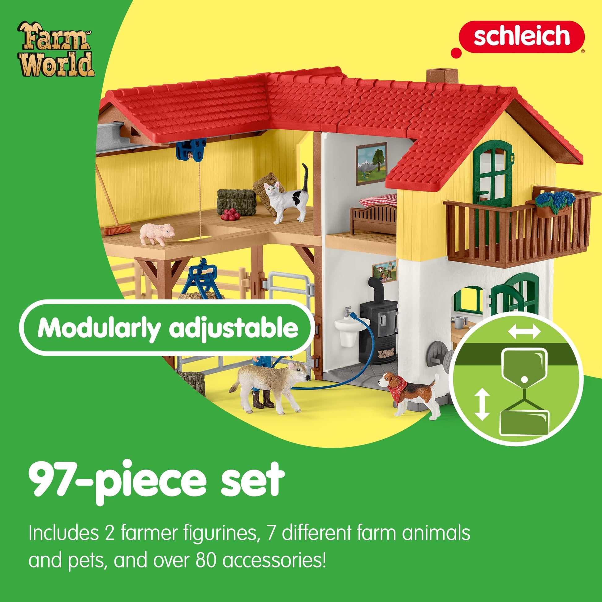 View compareSchleich Farm World - Large Farm House, 97-Piece Toy Farm House with 3 Rooms, Farmer Figurines and Multiple Animal Toys with Acc