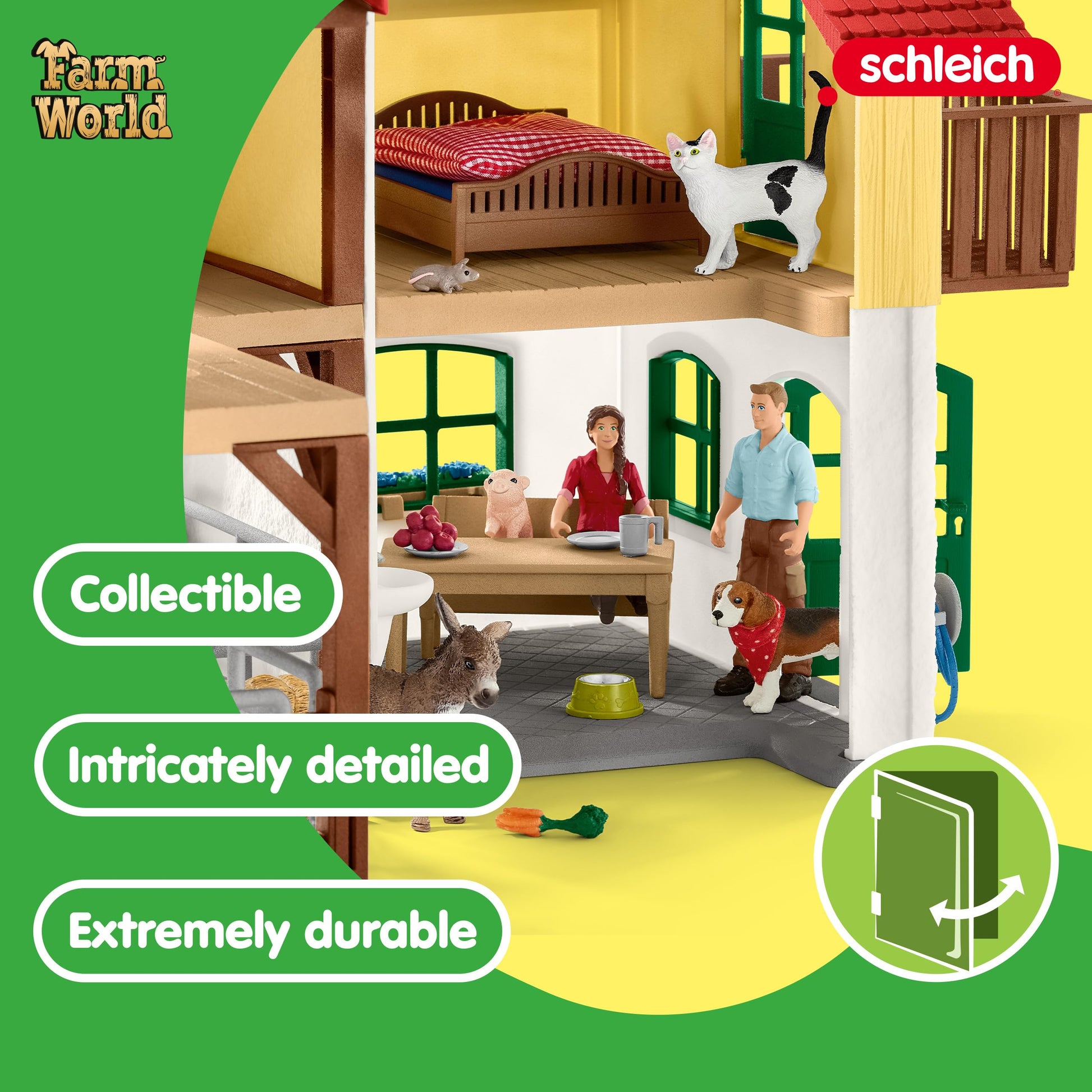 Schleich Farm World - Large Farm House, 97-Piece Toy Farm House with 3 Rooms, Farmer Figurines and Multiple Animal Toys with Acc
