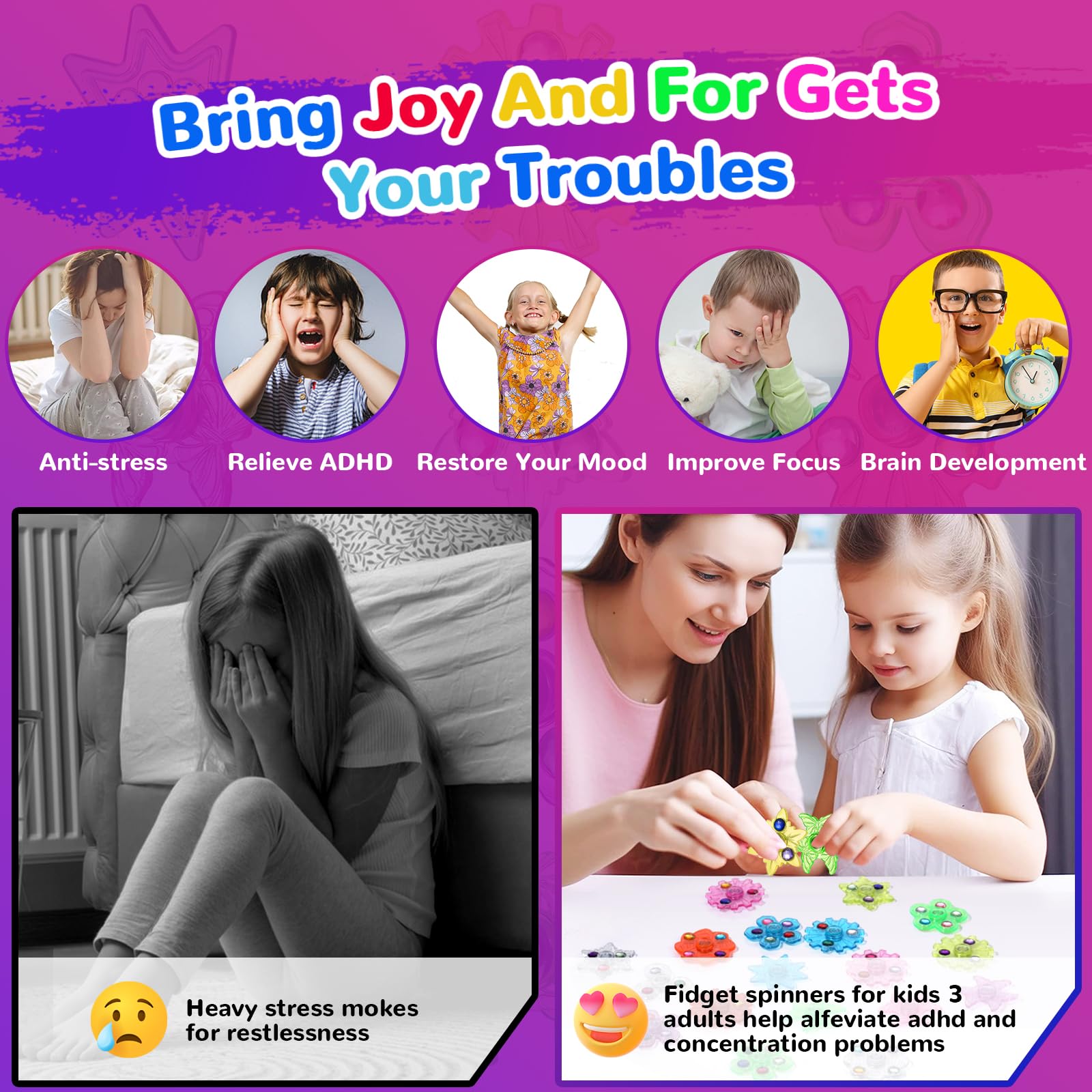 SCIONE 24 Pcs Mini Fidget Spinners Bulk Stress Reduction and Anxiety Relief Hand Spinner Fidget Sensory Toys for Kids Birthday Party Favors Canival Treasure Box Toys for Classroom Prizes Supplies