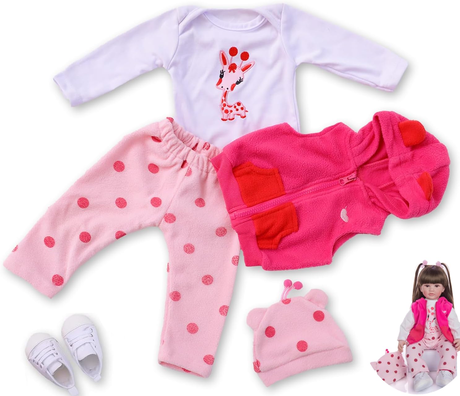 scnbom Reborn Baby Dolls Girl Clothes for 17-22inch Outfits Accesories (Giraffe 5pcs Set)