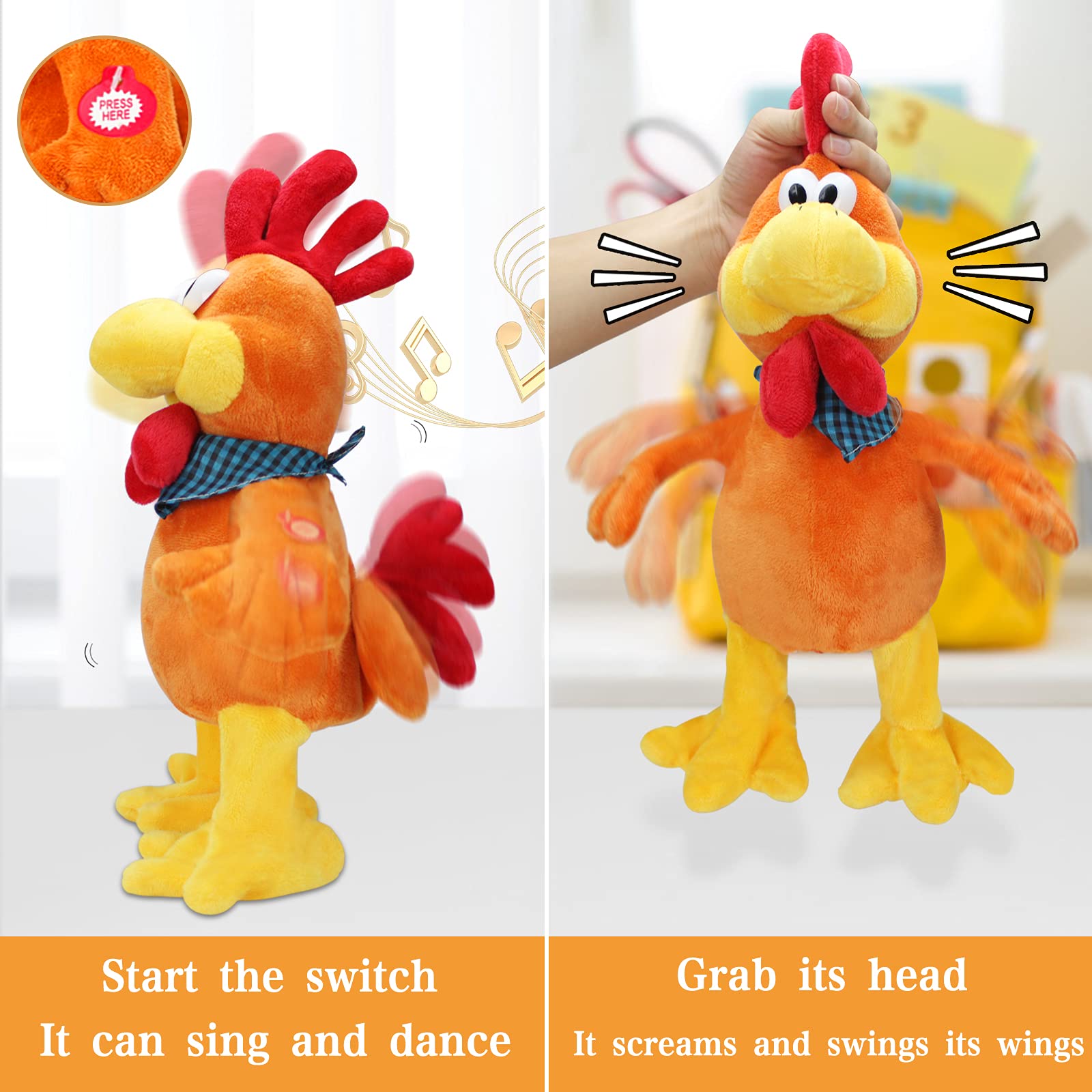 Sdenow Musical Squawking Chicken Stuffed Animal Walking Singing Waving Rooster Fun Electronic Interactive Animation Plush Toys G