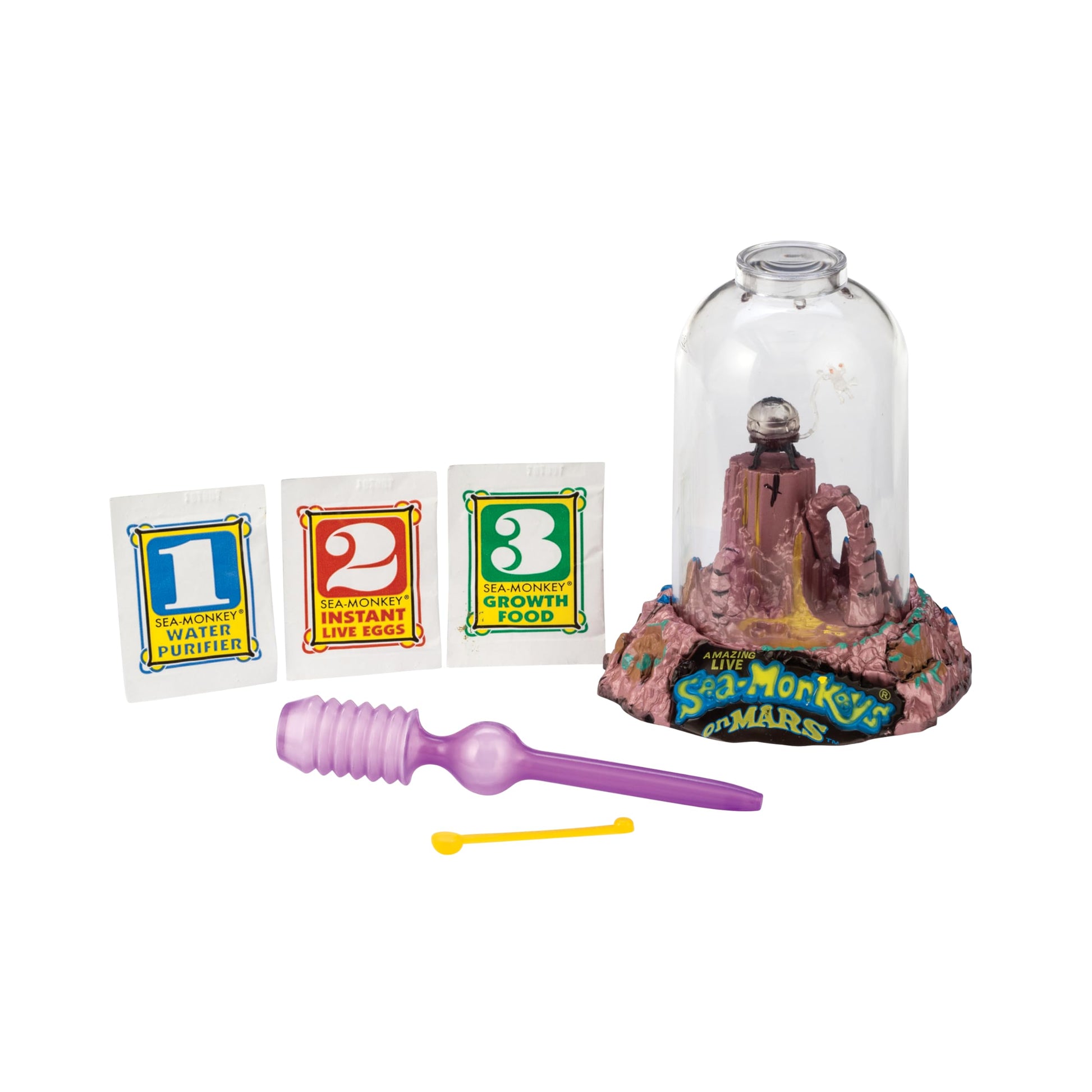 - Q: What is included in the Sea Monkey's On Mars aquarium kit? A: The Sea Monkey's On Mars aquarium kit includes a water purifier, instant live eggs, growth food, complete instructions, a feeding spoon, and an aqua-leash, along with a special magnifier to observe the sea monkeys closely.