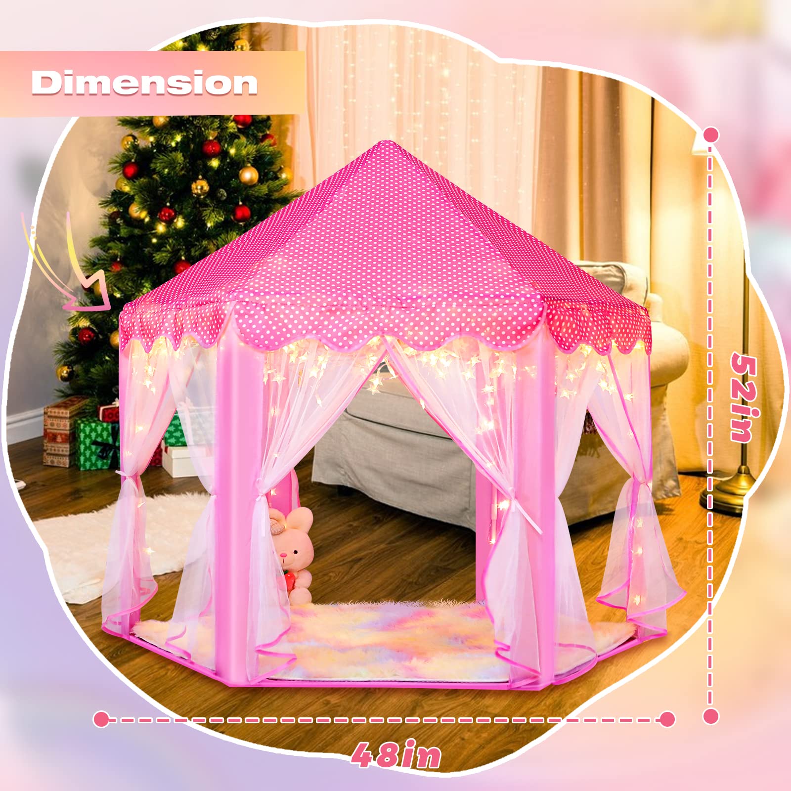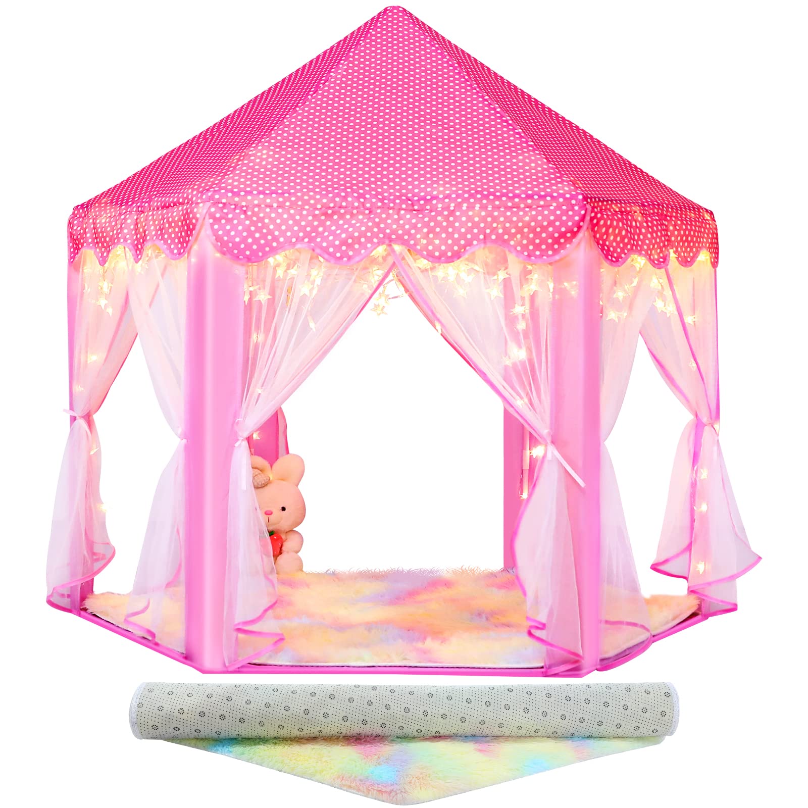 - Q: How do you set up the princess tent and what materials are included? A: Setting up the Senodeer Princess Tent is easy and straightforward. It comes with a princess castle play tent, a starlight string (batteries not included), and a soft rainbow rug. Simply insert the poles into the designated pockets, hang the star lights, and place the rug inside for a cozy play area.