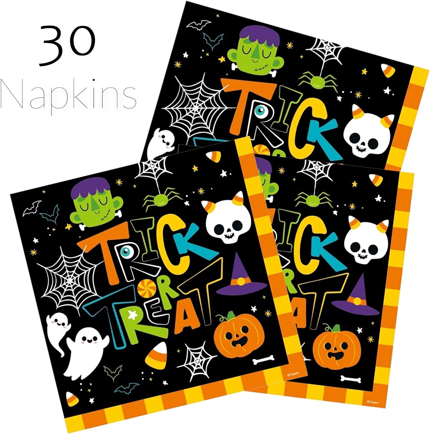 Serves 30 Complete Party Pack Cute Halloween Monsters And Ghosts 9' Dinner Paper Plates 7' Dessert Paper Plates 9 Oz Cups 3 Ply Napkins 2 Table Cover Banner Party Decorations Party Supplies