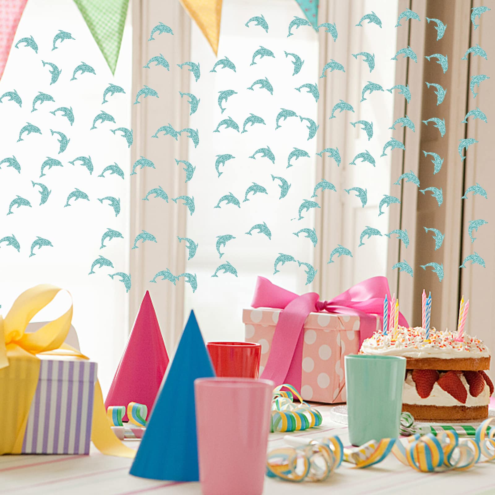 View compareSet of 100 Dolphin Confetti, Sky Blue Glitter Ocean World Sea Animal Paper Scatter, Circus Table Confetti, Dolphin Smash Cake De