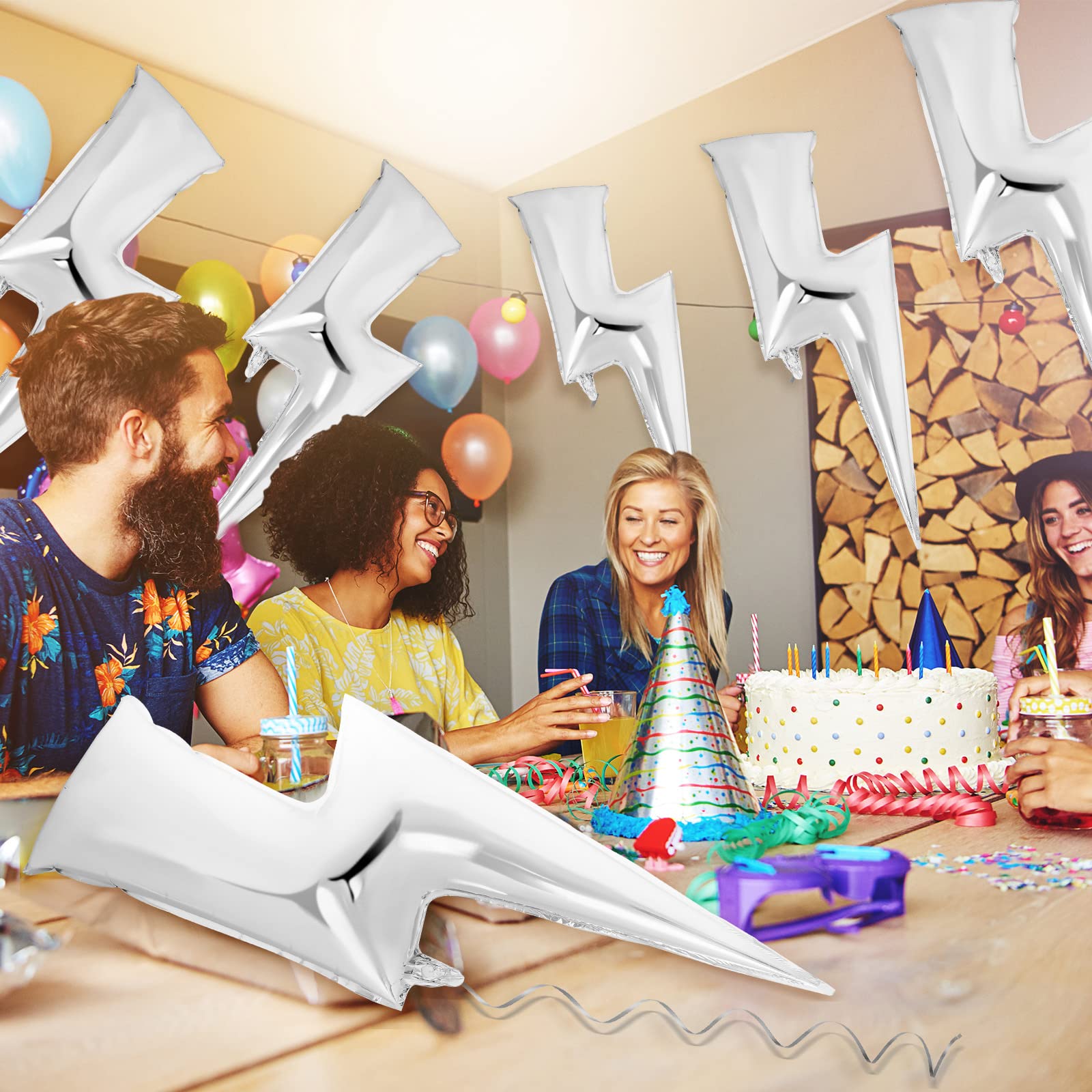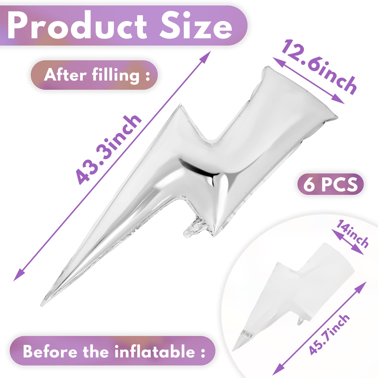 Set Of 6 Lightning Bolt Foil Party Balloons 45 Inch Flash Balloons For Party Mylar Lightning Bolt Shape Balloons Foil Bolt Birthday Party Supplies For Birthday Wedding Decoration (Silver)