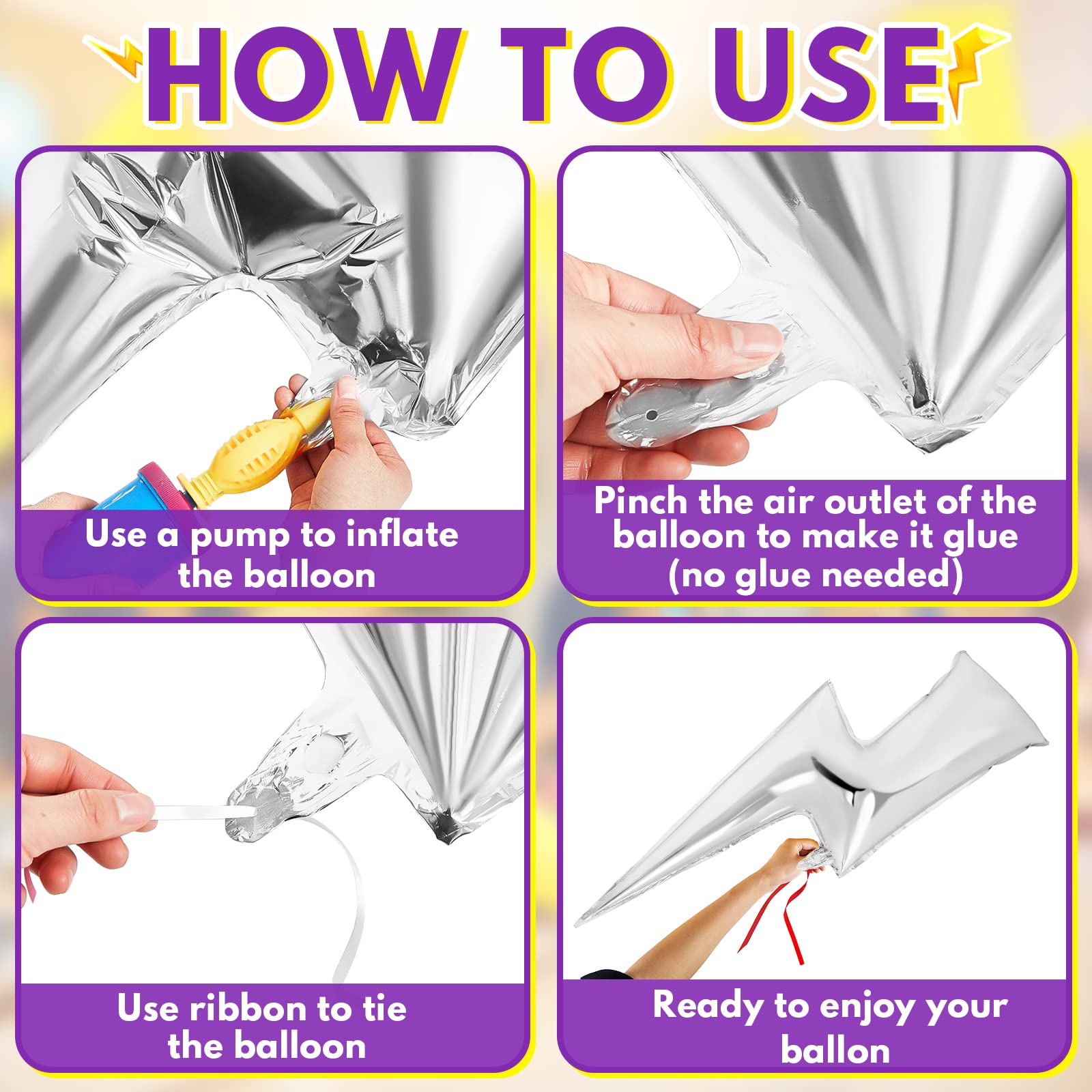 • Q: How many balloons are included in the package? A: The package includes a total of 6 lightning bolt foil balloons, providing you with plenty of decorations for your event.