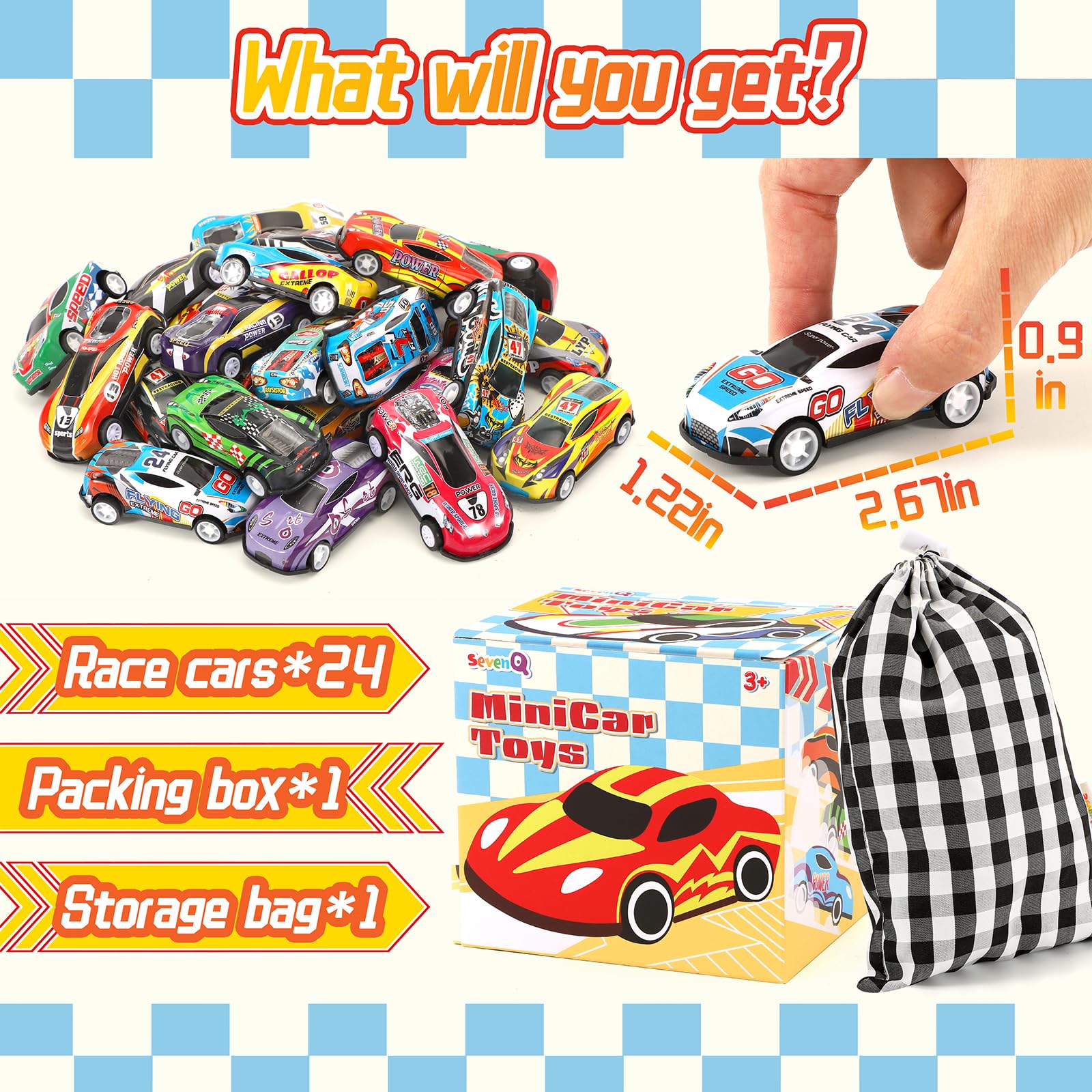 SevenQ 24Pcs Pull Back Race Cars Playset with Storage Bags - Kids Party Favors & Bulk Gifts for Boys and Girls