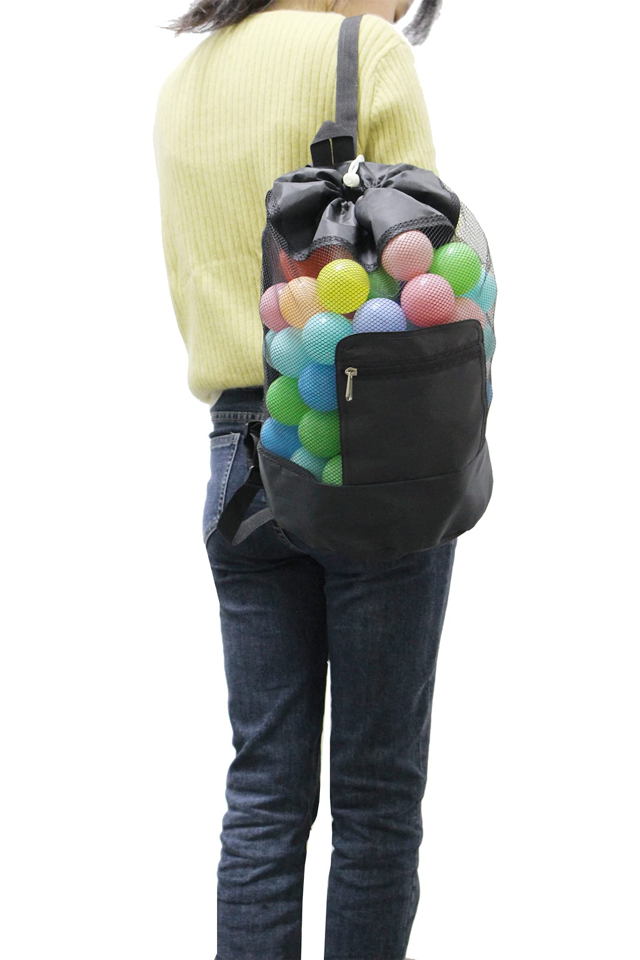 SEW UR LIFE Large Beach Toys Mesh Black Bag,Adjustable Shoulder Strap, Drawstring, Beach Toy Bag For Children Used in Beach, Swi