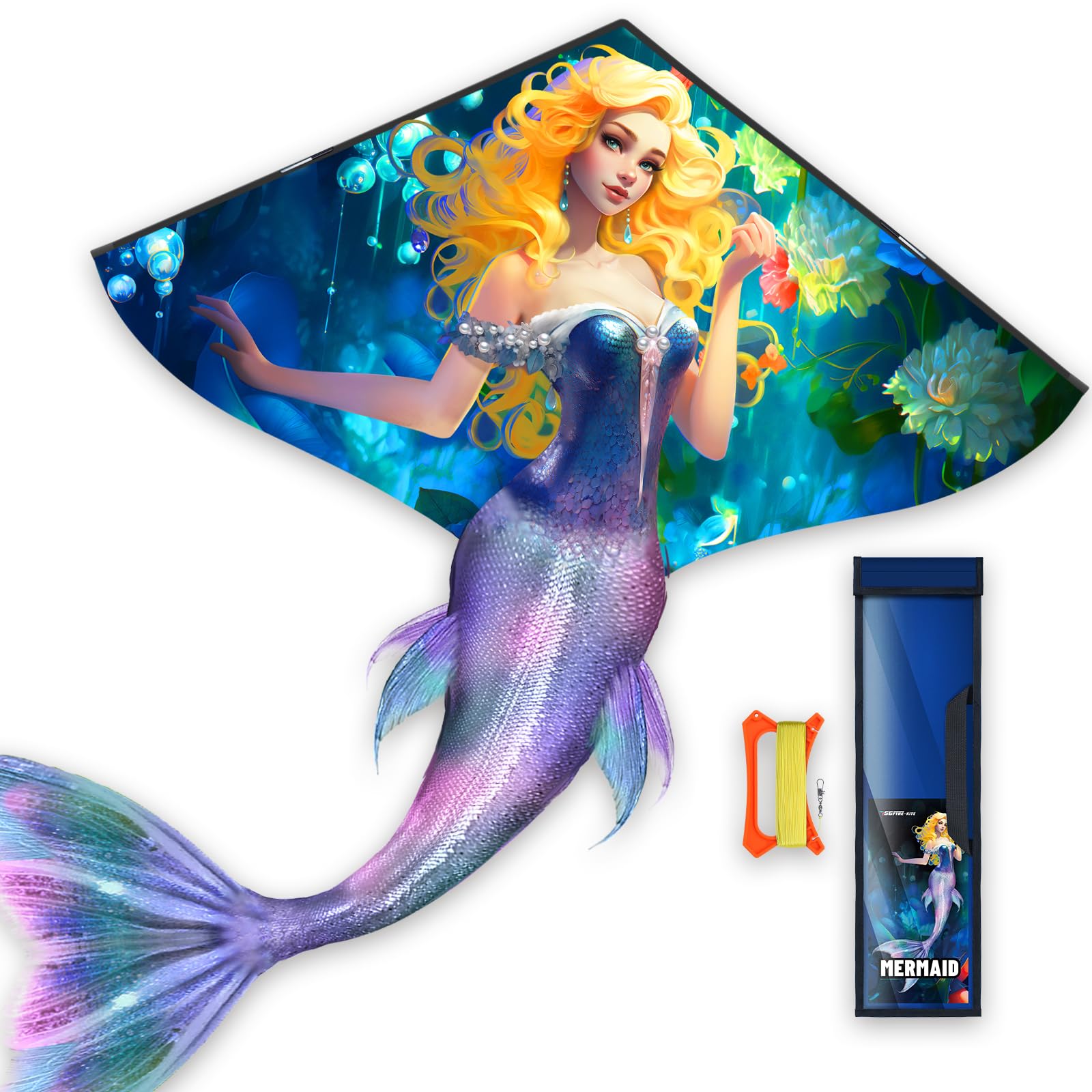 Applicable Age: With Its Compact Packaging And Cost-Effective Price, This Kite Is Perfect For Both Kids And Adults. Size: Mermaid: Shape: This Kite Is Designed With A Classic Mermaid Shape, Making It Aerodynamic And Easy To Fly. Whether You'Re A Beginner Or An Experienced Flyer, This Kite Is Deadly Easy To Handle. Installation Tips: Easy To Install, Installation Video Included Features: Easy To Fly With Durable Fiberglass Frame,High Quality Material After-Sales Service: If You Have Any Question, Please Contact Us Freely, We Will Reply You Within 24 Hours