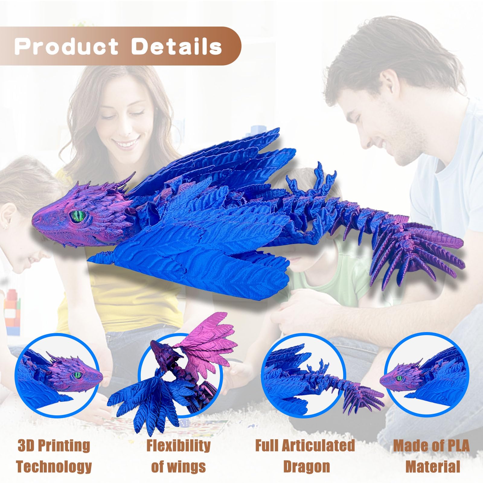 Introducing The Feathered Wyvern Dragon, A Stunning 3D Printed Dragon Figure That Will Captivate Fantasy Enthusiasts Of All Ages. This Dragon Is Meticulously Designed And 3D Printed, Producing Intricate Details That Bring It To Life. With Its Articulated Wings, You Can Pose This Dragon In Various Positions, Creating A Dynamic Display. Not Only Is It A Visually Appealing Desktop Pet, But It Also Doubles As A Kids Toy, Providing Endless Entertainment And Relaxation. Place This 3D Printed Dragon With Wings On Your Desk, Shelf, Or Anywhere You Desire, And Let It Transport You Into The Realm Of Fantasy. Get Your Hands On This Unique Piece, Perfect For Collectors And Anyone Who Appreciates The Beauty Of These Mythical Creatures. Choose From 10 Different Colors To Find The Perfect Match For Your Collection. Don'T Miss Out On Owning This Extraordinary 3D Printed Dragon With Wings, The Ultimate Fidget Toy For Dragon Lovers.