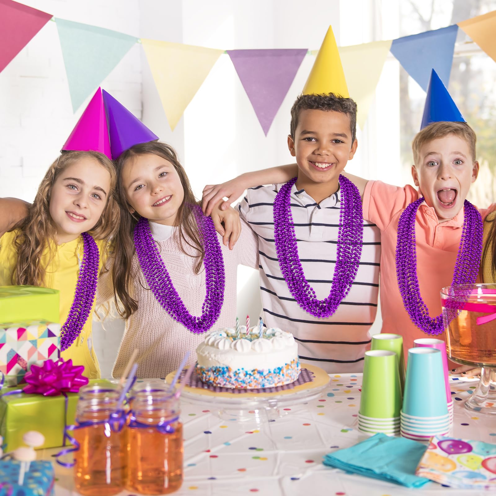 SHAOQINLIN 100 PCS Purple Mardi Gras Beads, Purple Beads Necklaces 33'' Metallic Beaded Costume Necklaces Party Necklaces for Ha