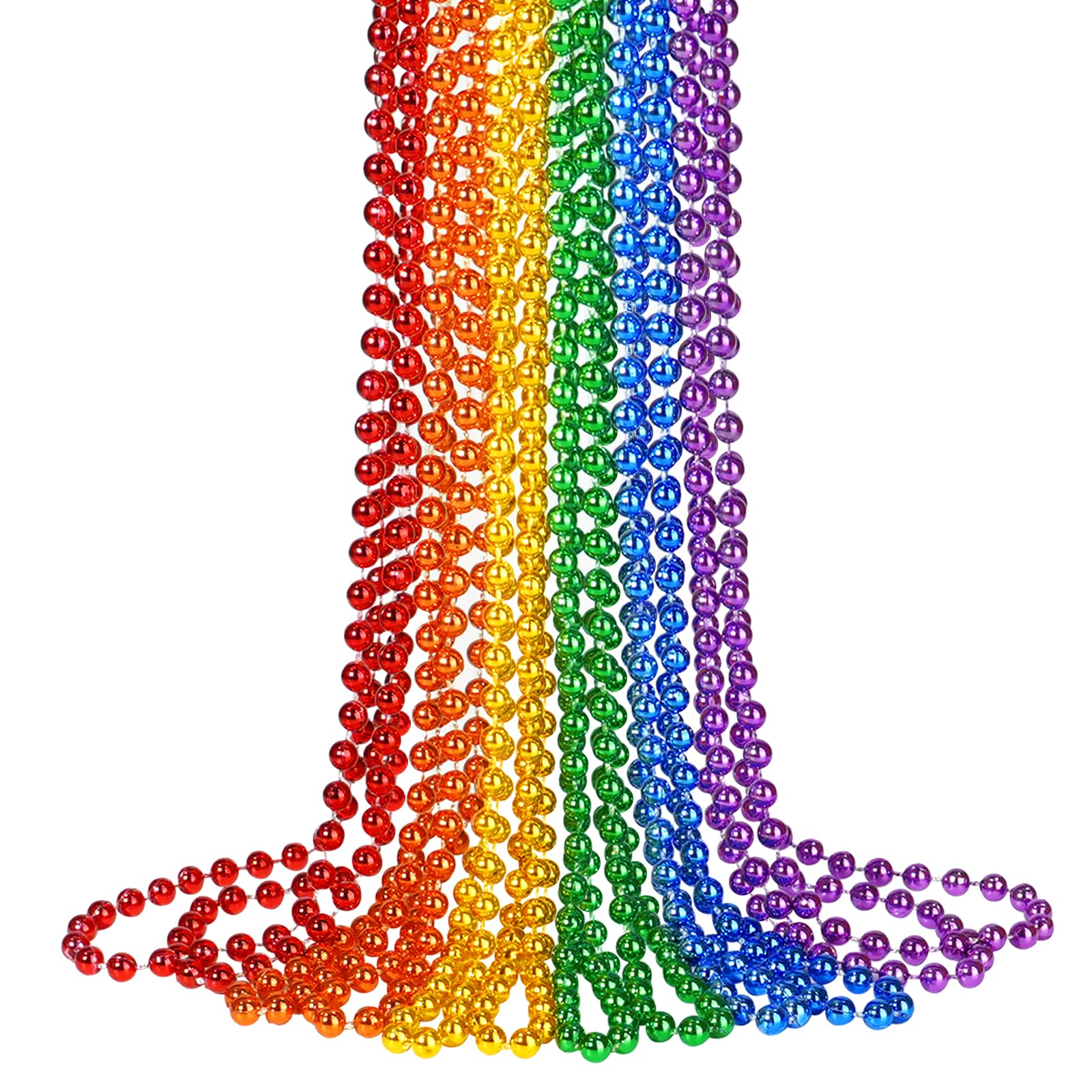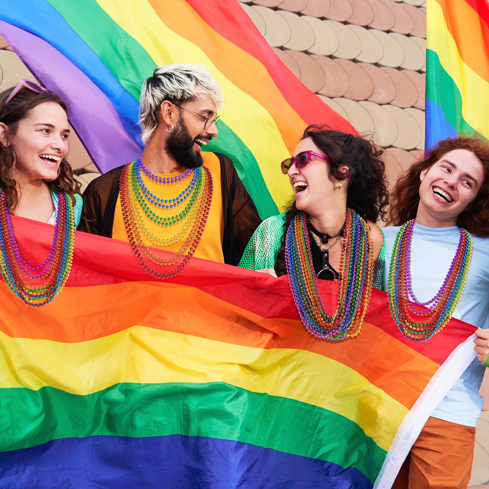 12 PCS Pride Beads Necklaces, Pride Accessories, Metallic Pride LGBTQ Rainbow Beads Necklaces Bulk, Pride Beads Stuff for Gay Lesbian Pride Month Parade Throws Rainbow Pride Party Favors in 6 Colors