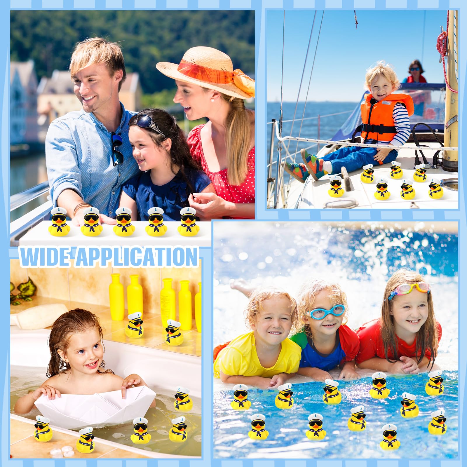 Shappy 24 Pcs Cruise Duck Bulk With Sunglasses Sets 2 X 1.9 X 2.4 Inch Mini Sailing Rubber Ducks Summer Cruise Ship Toy Squeaky Bath Party Toy Duckies For Birthday Party Favors (Yellow)