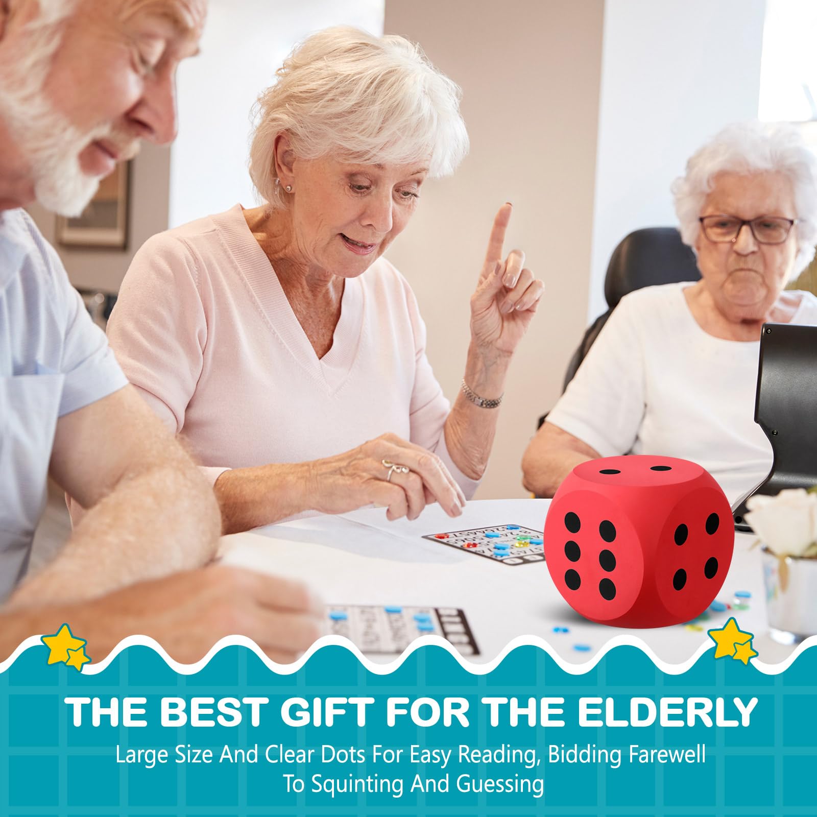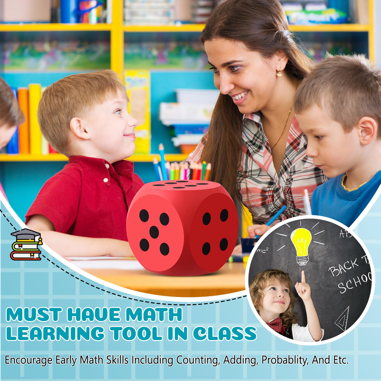 Features: Designed to aid learning through a fun approach, these jumbo game dices help promote your math skills by introducing them to probability, simple arithmetic, and critical thinking. It's a nice and amusing way to make learning enjoyable. You can play worry free with our foam dices. Because of their lightweight, soft characteristics, there's no chance of window breakages or injuries. And you can roll those dice without any trepidations and amp up the fun factor. Specifications: Material: EVA foam Main Color: red Size: about 6 x 6 x 6 inches Package includes: 1 x Foam dices Notes: Manual measurement, please allow slight errors on size. The color may exist a slight difference due to different screen displays. It's recommended to use under the supervision of adults in case of choking risk.