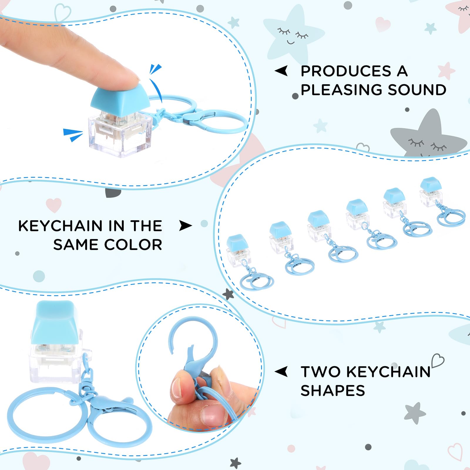 Shappy 6 Pcs Keyboard Fidget Toys Fidget Keychain Fidget Keyboard Clicker Keychain Gift Keychain Button Stress Relief Gifts for mature-themed Office Home School ADHD Toy Cool Fidgets(Blue)