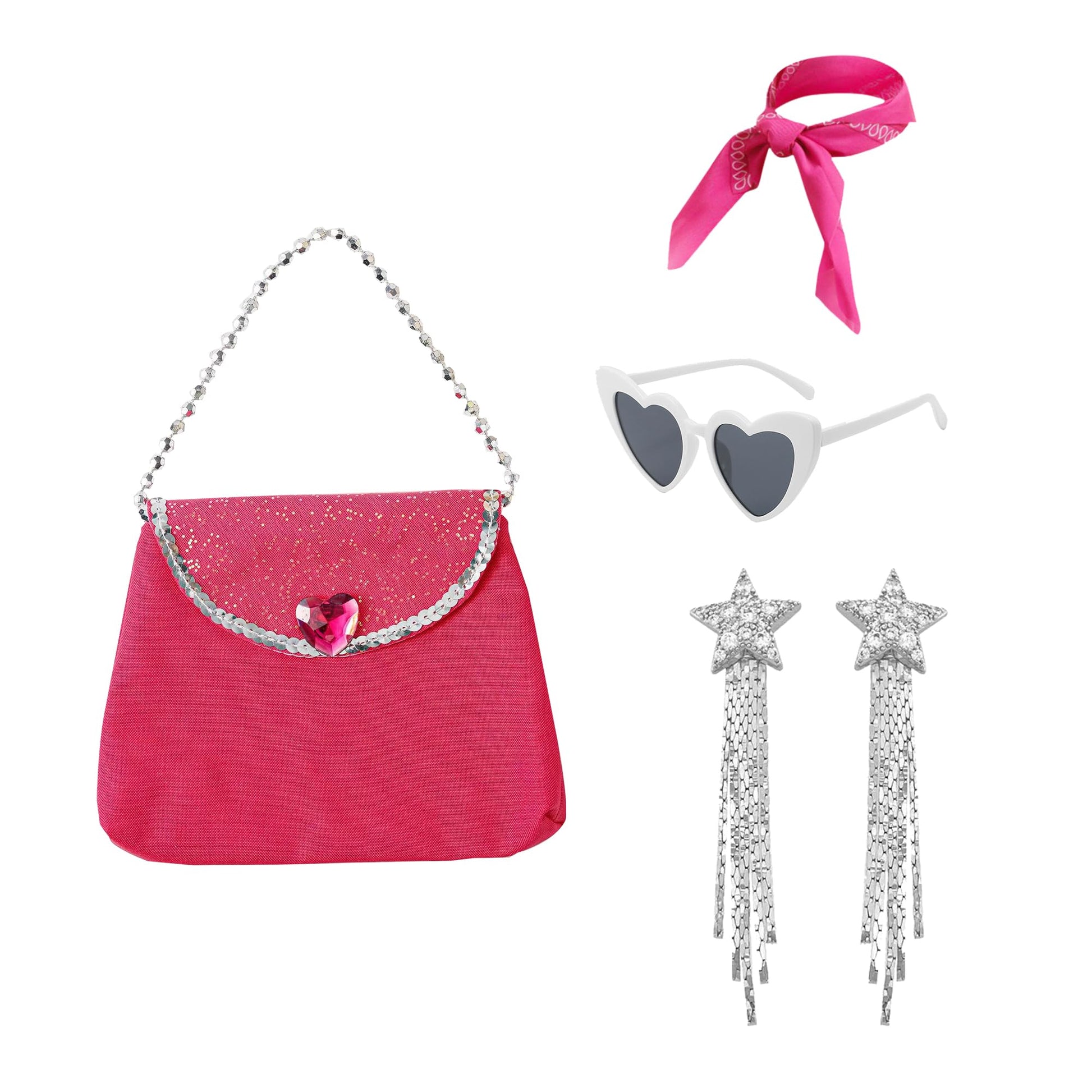 Design concept: Our cowgirl costume for girls features a charming rose vest, pants and scarf and Star earrings, encouraging your child's imagination. It sparks storytelling and imaginative play, empowering her to become the hero of her own wild west tales.Fashioned after the popular 2023 doll movie ,with this cowgirl costume, your girl will look like she stepped right out of the movie. | Premium Quality: Crafted from high-quality materials, our 80s cowgirl cowgirl costume offers durability and comfort. | Suitable occasions: Perfect for dress-up fun, Halloween and Birthday party, themed parties, or everyday adventures, our cowgirl outfit lets your child explore her creativity while embodying the spirit of adventure. | Accessories Included: 1*Scarf, 1*Heart-shaped glasses,1* Star earrings,1*Bag. Your movie fans girls is worth having them. | Size Choice and Warm Tips : This movie rose costume fits girls aged from 4 to 12. Please wash it by hand and do not use a washing machine. We recommend washing the accessories and the dress separately. Please note that age is only an approximate guide for size. Please measure your girl