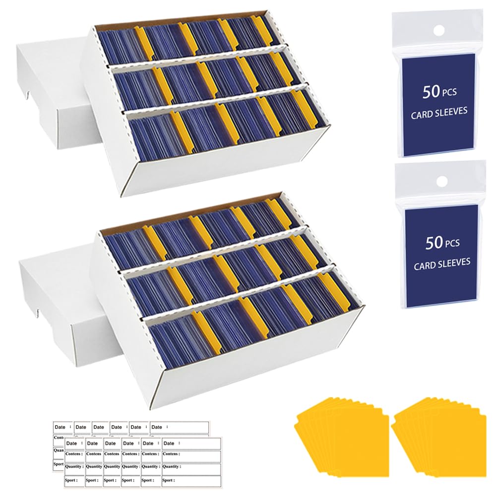 Shinwinly Trading Card Storage Box, 3-Row Sports Card Storage Box With 100 Sleeve,Card Organizer Box For Storing Protecting And