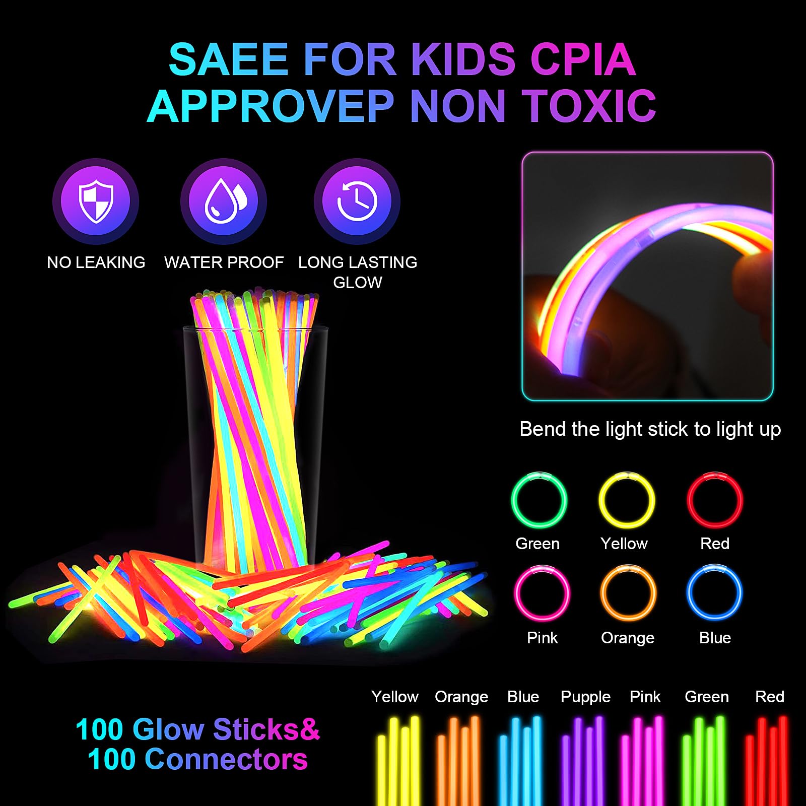 - Q: Can the glow sticks be shaped into different forms? A: Absolutely! The 100 pack of 8" glow sticks includes connectors that allow you to create various shapes, such as bracelets and necklaces, for a personalized party experience.