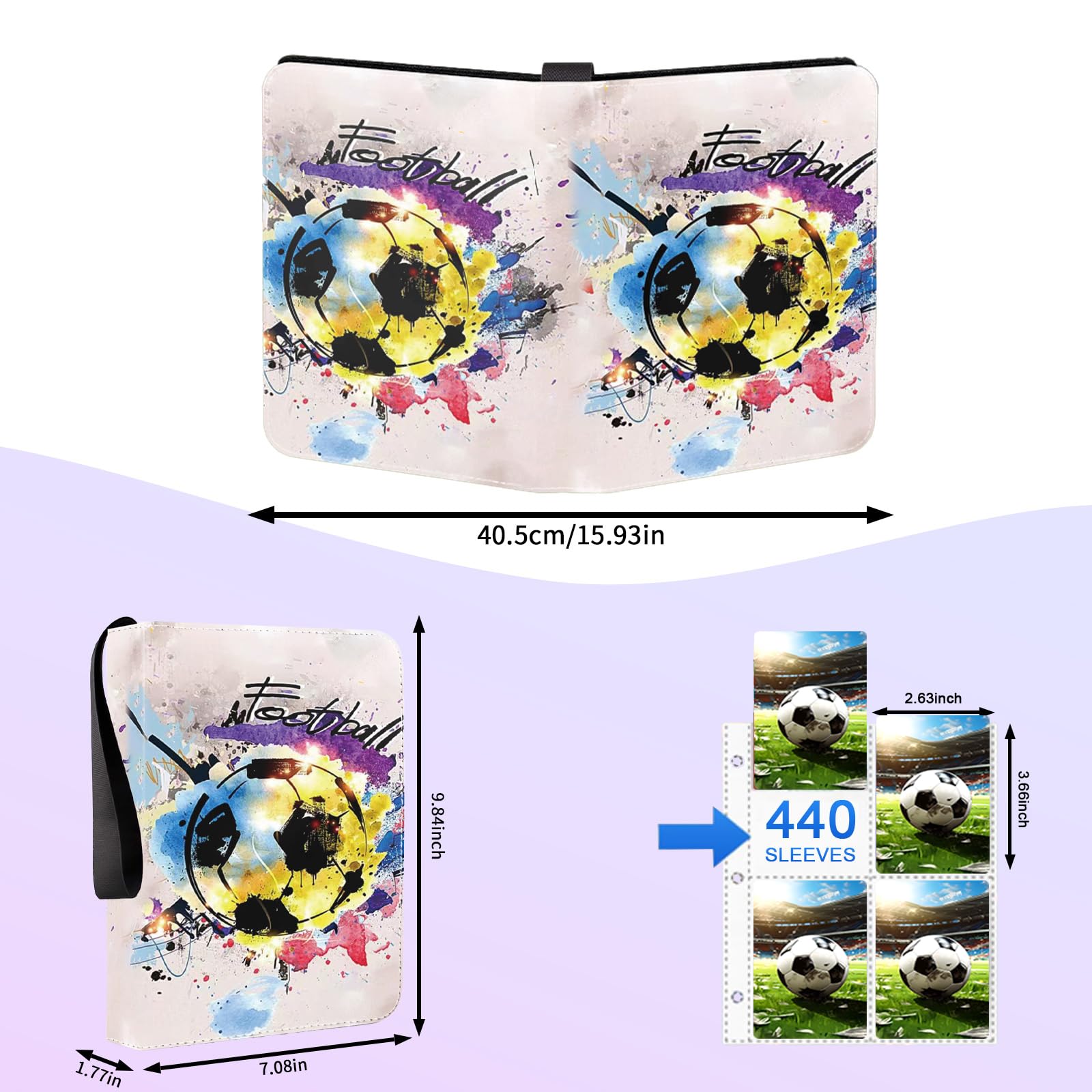 enhanced 4-Pocket Soccer Card Binder: Ultimate Soccer Cards Storage & Display &Protection Solution Elevate your card collection with our top-rated 4-pocket Sport card binder designed for serious collectors and enthusiasts. This Soccer binder combines functionality durability and style to protect and showcase your valuable sport cards. Key Features: ? Massive 440-Card Capacity. 55 detachable sleeves with 4 double-sided pockets per page store game cards soccer cards baseball cards basketball cards football cards gaming and standard-sized cards. ? Multiple Protection. Waterproof PU leather exterior + acid-free PP sleeves guard against dust moisture bending and fading. ? Clearly Display Soccer Card. Transparent pages highlight card artwork while keeping collections organized and visible. ? Portable Handle Design. Lightweight 9.7x7?1.8 size with potable wrist strap fits schoolbag backpacks briefcases or bike for on-the-go showcasing. ? Versatile Use- Ideal for soccer cards/baseball/football cards Yu-Gi-Oh! Magic: The Gathering credit cards and other collectibles card. Why choose us? 3 rings to easily add and remove card sleeves; 440+ large capacity no longer worry about card capacity; Smooth zipper closure prevents accidental opening losting card; Waterproof cover and waterproof inner page double protection for your cards; PU leather soft touch ensures comfortable hand feel; Perfect gift for birthdays holidays or special occasions. Collectors Soccer Fans' Trust - Recommended by enthusiasts for its quality environmentally friendly material and card-friendly design. Let's Organize protect and display your treasured cards with confidence!