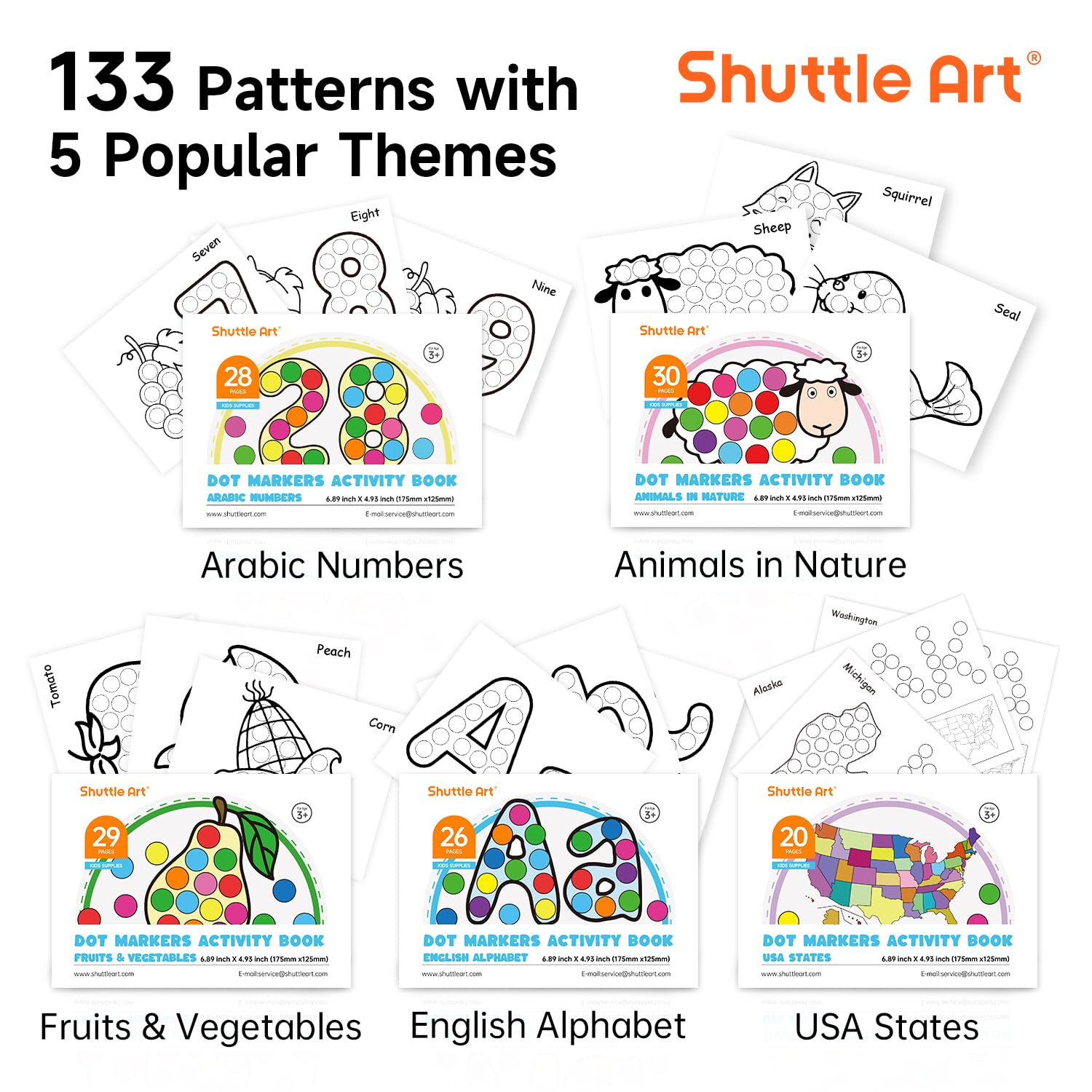 View compareShuttle Art Dot Markers, 36 Colors Washable with 135 Activity Sheets, 5 Activity Books, Fun Art Supplies for Kids Toddlers and P