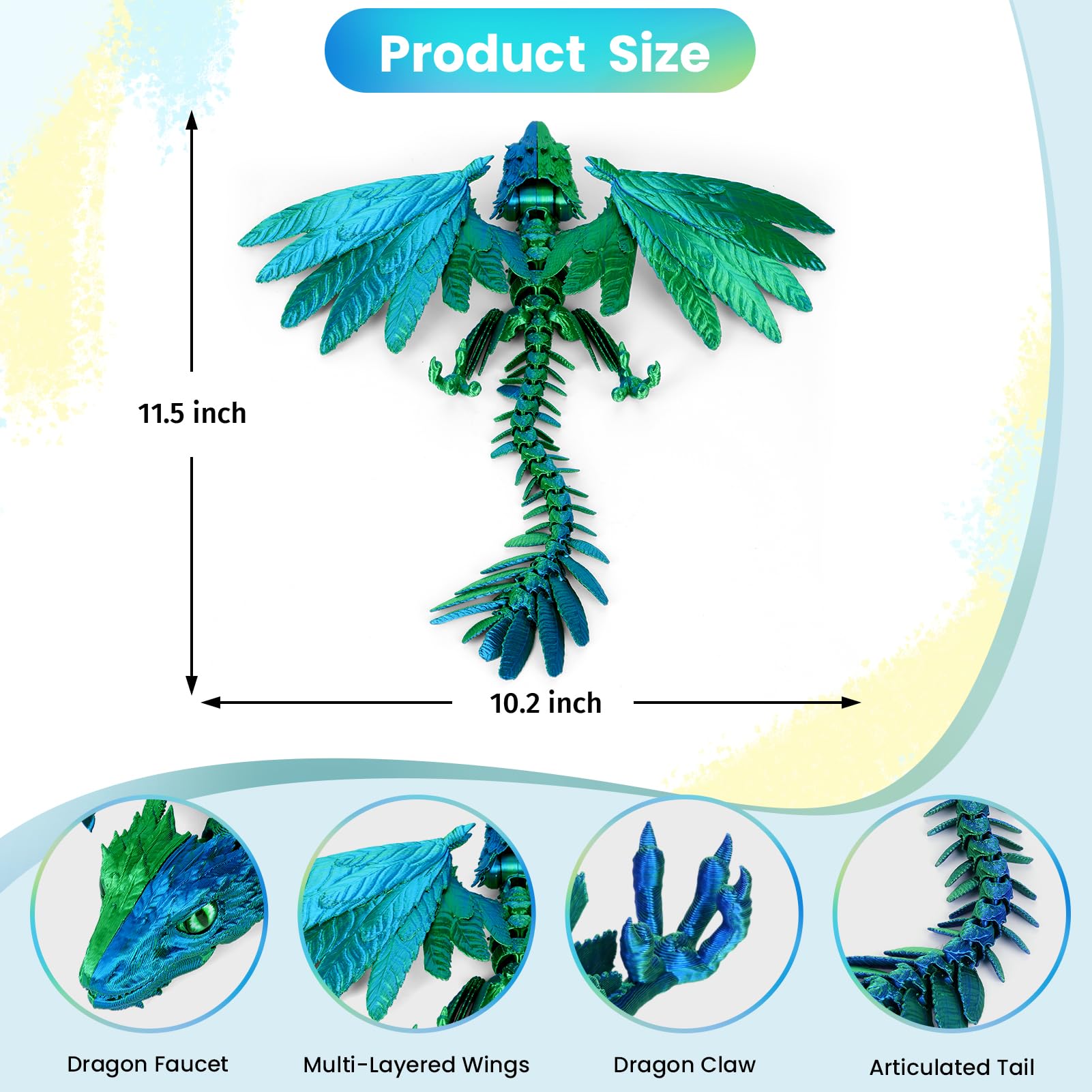 Shuwnd 3D Printed Dragon With Wings, Feathered Wyvern Dragon,Full Articulated Crystal Flying Dragon,Realistic Large Pet Dragon, Flexible Shoulder Dragon Stuff 3D Printed Animals Toy (Blue Green)