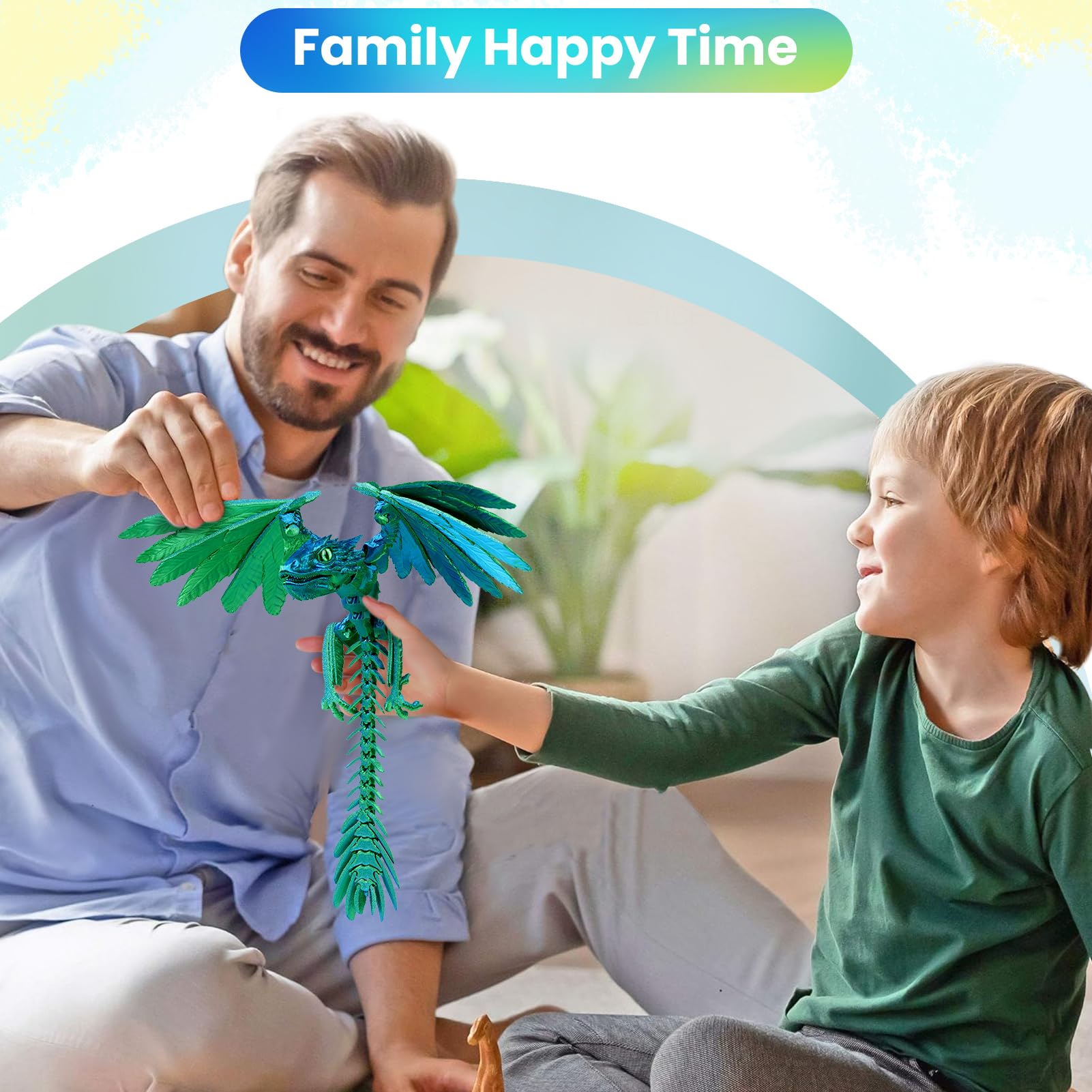 Shuwnd 3D Printed Dragon With Wings,3D Printed Animals Toy,3D Printed Flexible Dragons,Crystal Dragon Fidget Toys,Full Articulated Dragon Crystal Dragon