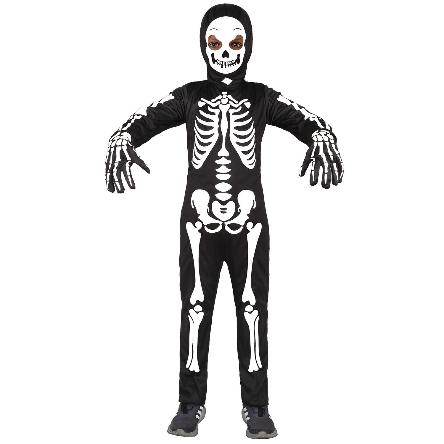 Sicypoty Kids Skeleton Costume Glow In The Dark Halloween Bone Bodysuit With Skeleton Hood Mask Black 8-10Years