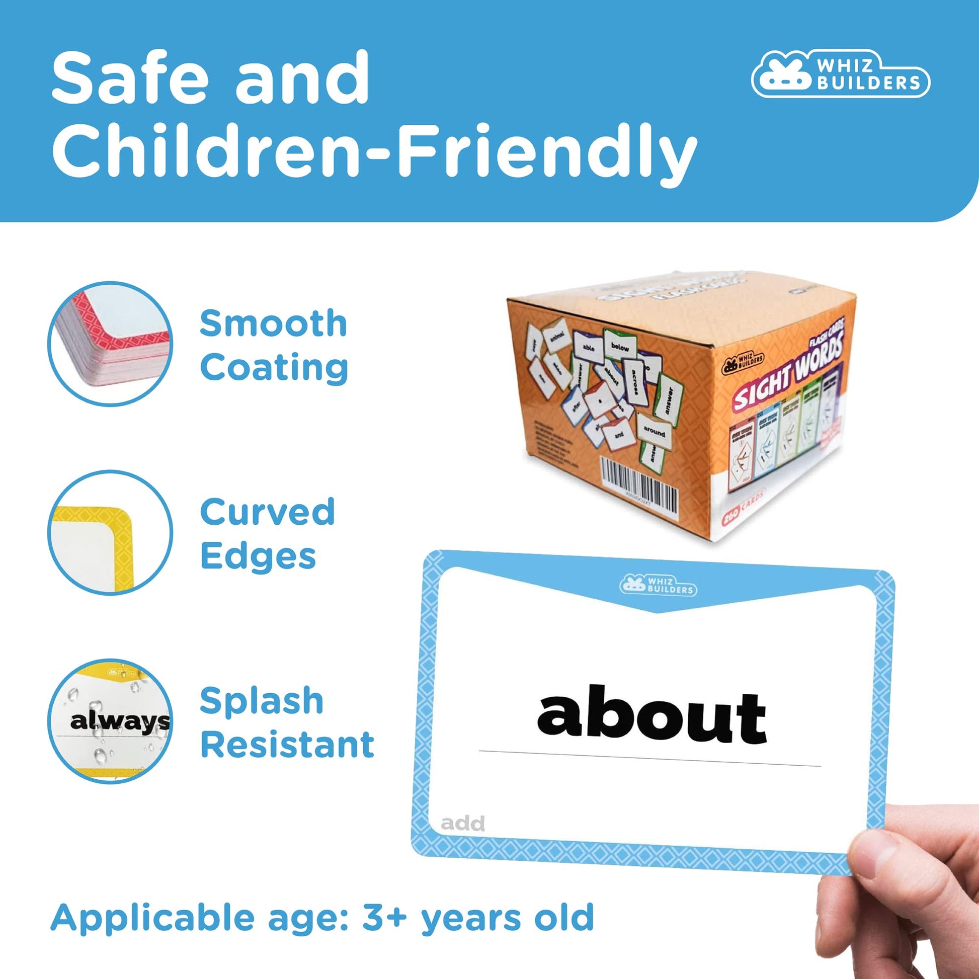 Encourage Your Growing Toddler To Learn While Having Fun With WhizBuilders Educational Montessori Sight Word Flash Cards!Whether you want to make it easier for your kids to read or simply provide them with an educational and fun sight word games, WhizBuilders sight words flash cards for toddlers 1-2 Years have you covered. Its ideal for kids ages 1-3 2-5 4-8 b.Our kids flash cards are designed to help your child learn the various words theyll read during Pre-K, Kindergarten, 1st Grade, 2nd Grade, and 3rd Grade to make it easier for them to learn and understand what they mean. Thoughtfully Designed kindergarten homeschool supplies With Safe & Durable MaterialsWe use large bold letters which coupled with the smooth and rounded design make sure your children can hold the sight words flashcards comfortably in their hands without parents having to worry about any pointy corners. With over 260 sight words, these kids kindergarten flash cards will help expand your childs vocabulary and enhance their reading skills by making it simpler for your kids to memorize them so they can recognize these words without having to decode them.More Features Youll Love:- Helps increase your child's reading speed and accuracy - Helps you children learn to write, spell and make sentences - We dont use any plastics or harsh materials to ensure its safe for toddlers - 6 teaching techniques and 6 learning games are included- Made using durable and lightweight materials for daily use- Makes a thoughtful and educational gift for kids on every occasion Click on Add To Cart & Help Your Children Start Learning Words The Smart Way With WhizBuilders Sight Words Flash Cards!