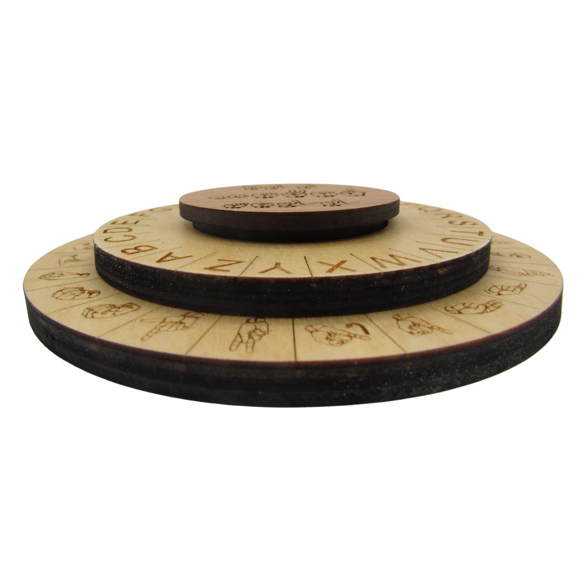 Sign Language Cipher Wheel - Asl Decoder Disk: This Unique Cipher Wheel Is Designed To Help Escape Room Players Decipher Encrypted Messages Using American Sign Language. The Disk Is 4.4'' In Diameter And About .75'' In Height, Making It A Great Addition To Detective And Spy Kits, As Well As Escape Room Themed Birthday Parties. The Text And Hand Shapes Are Laser Engraved, Ensuring That They Will Never Fade Or Wash Away Over Time.