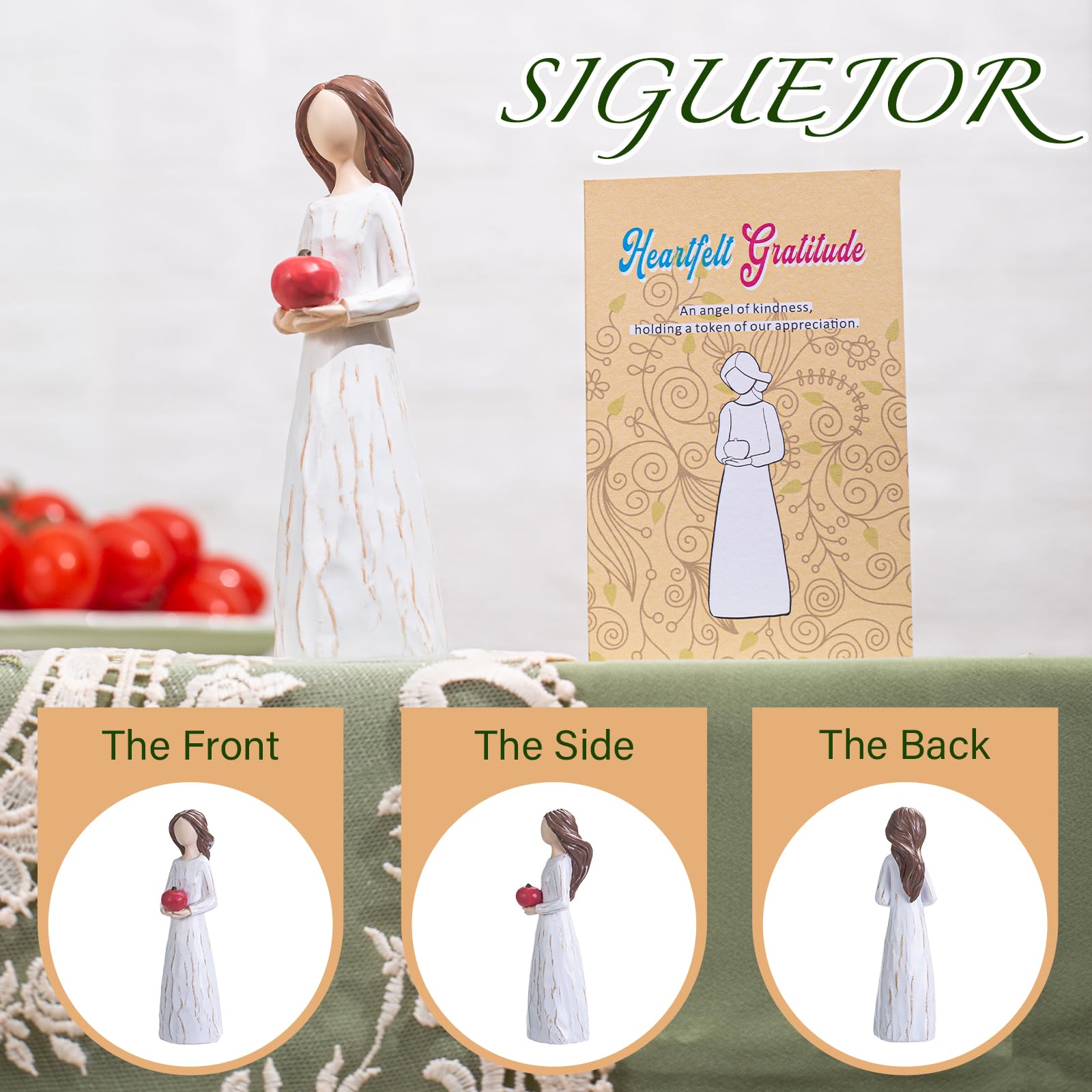 Siguejor Teacher Gifts,Grateful Heart,Hand-Painted Resin Figurines Of Woman Holding Red Apple, To Express Appreciation For Teach