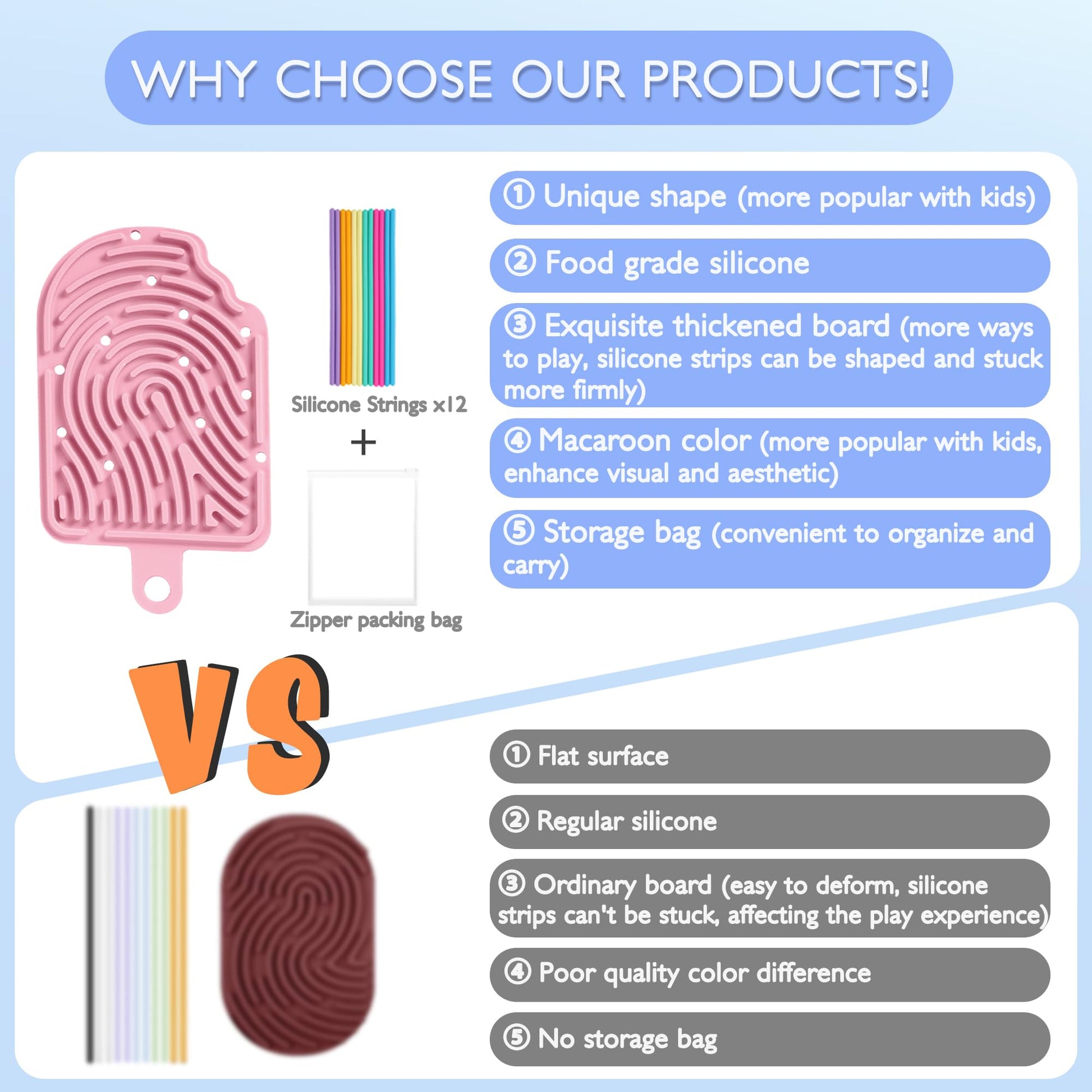 The Double-Sided Sensory Active Board is a popular fidget toy, made of edible grade silicone, safe and non-toxic. There are 12 vibrantly colored strips and convenient travel bag. This sensory fidget board can decompress and relieve anxiety, beneficial for individuals with Autism, ADHD, ADD, and OCD, can promote cognitive development and enhance hand-eye coordination. Suitable for kids 3+ & Adults, it is a great gift.