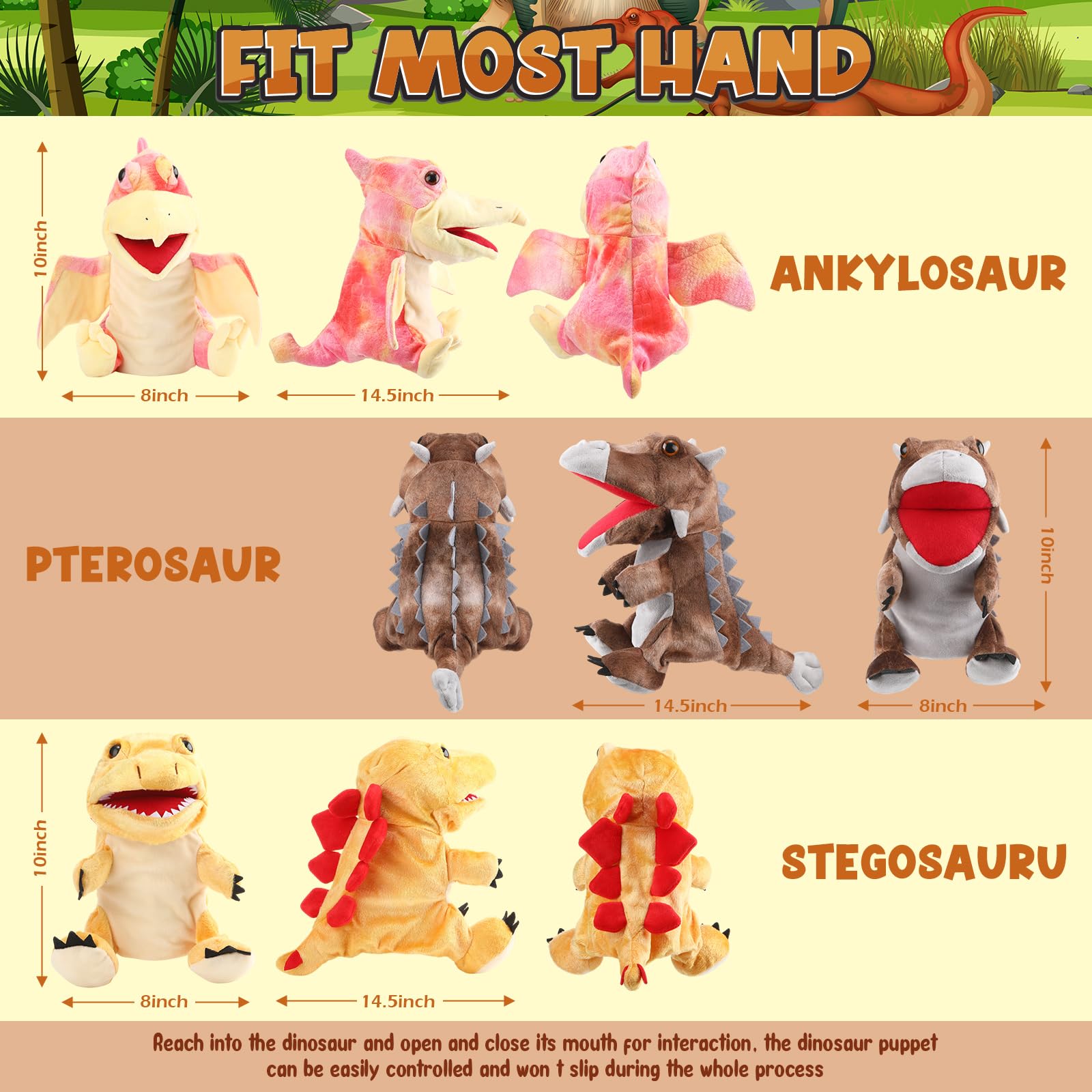 Silipull 3 Pieces Dinosaur Hand Puppets 12 Inch Plush Stuffed Animals Puppet Dinosaur Soft Toys For Animal Storytelling, Teachin
