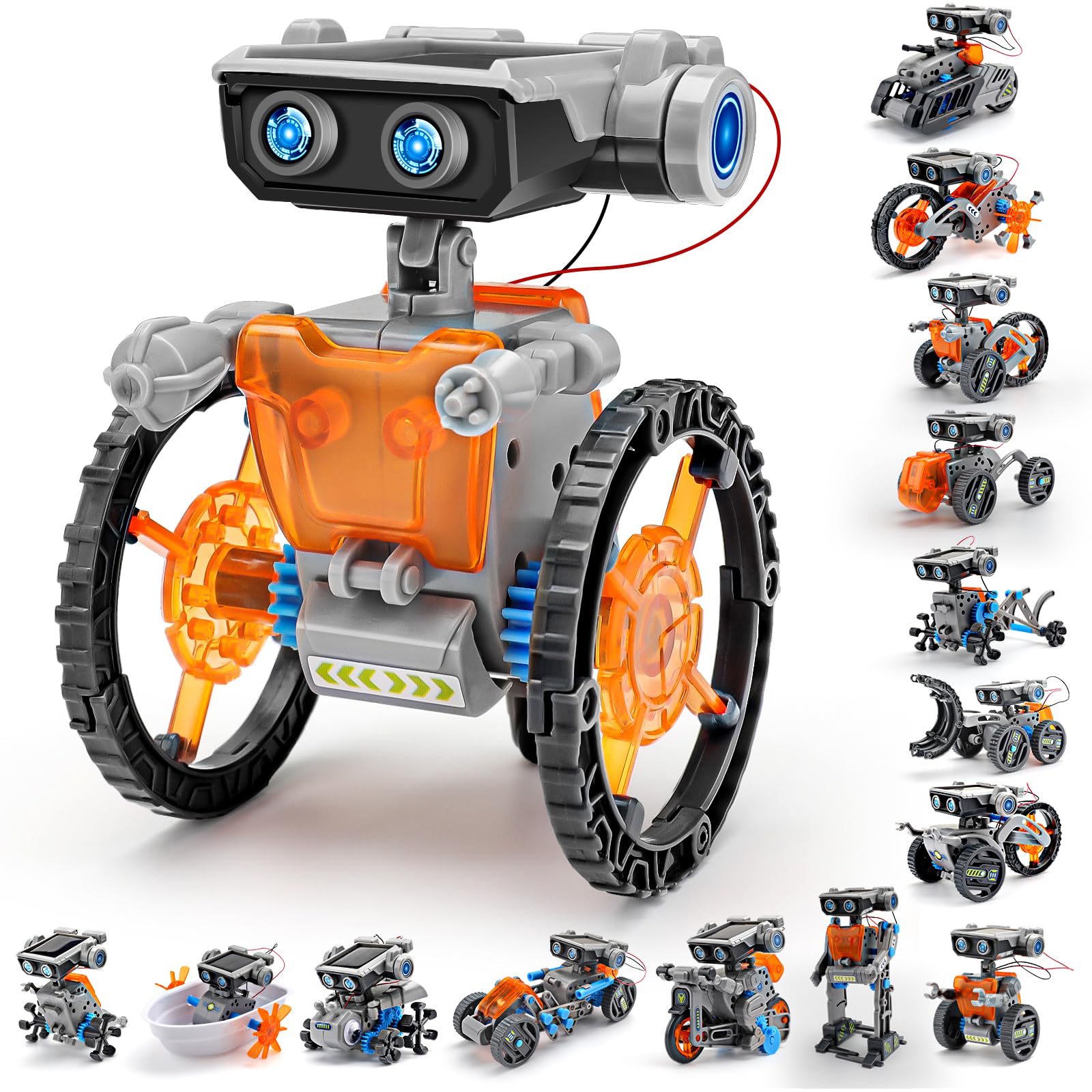 • Q: What can my child learn from building the 15-in-1 robot? A: By building the 15 different robot forms, children will gain hands-on experience in engineering and design, enhancing their problem-solving skills and creativity while learning about renewable energy and science concepts.