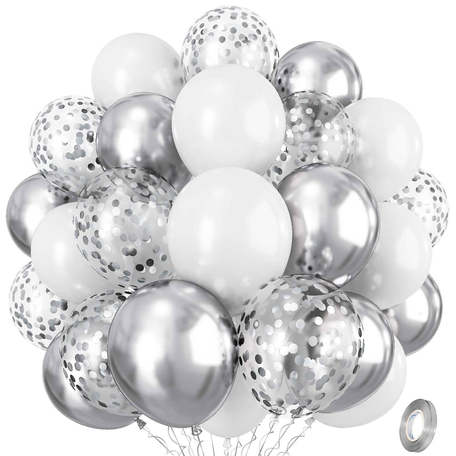 View compareSilver And White Balloons, 12 Inch Metallic Silver White Latex Balloons Set Decor With Silver Confetti Helium Balloons For Boys