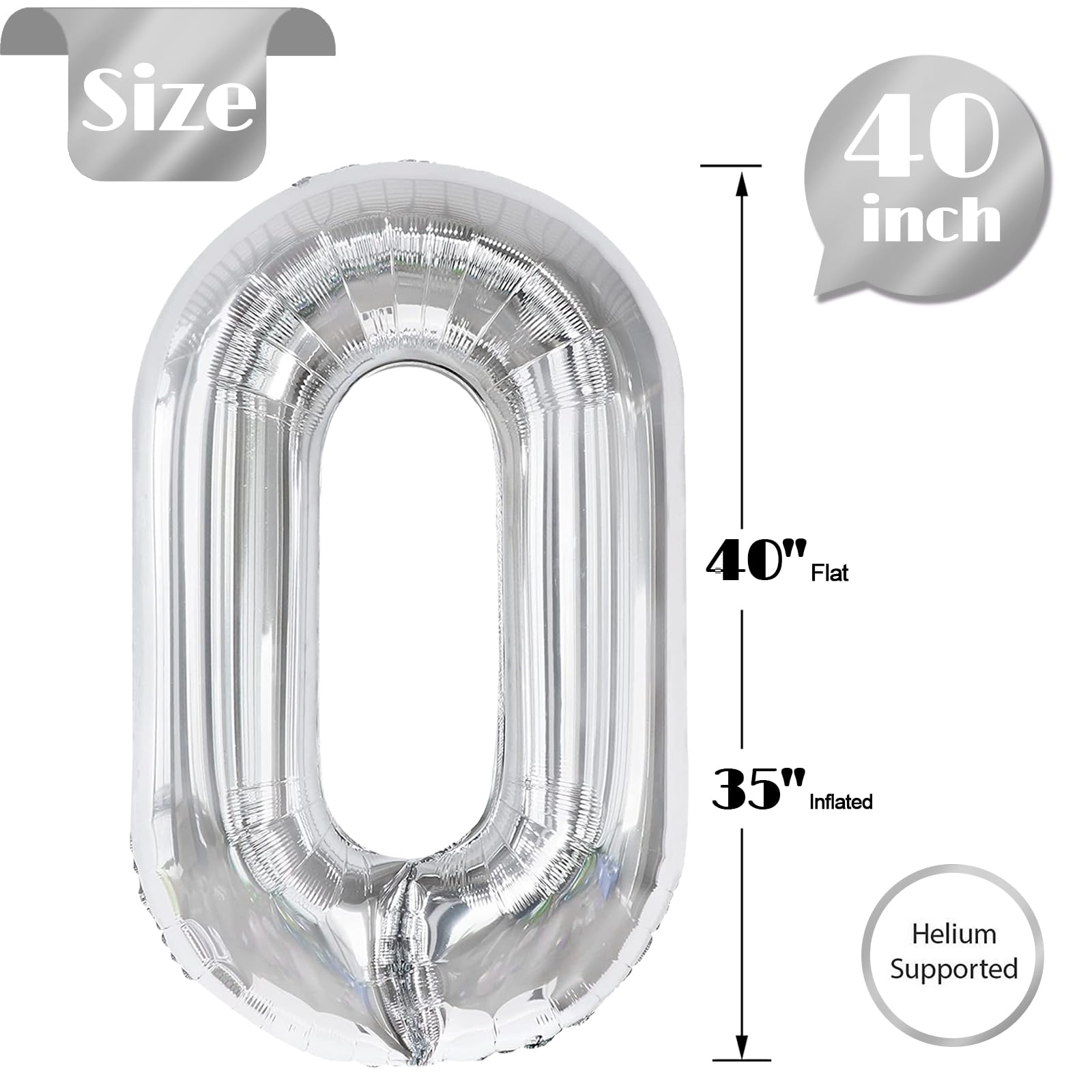Silver Number Balloon 40 Inch, 0 Number Balloons, 10 20 30 40 50 Numbers Balloon Birthday Decorations, Silver Party Supplies For