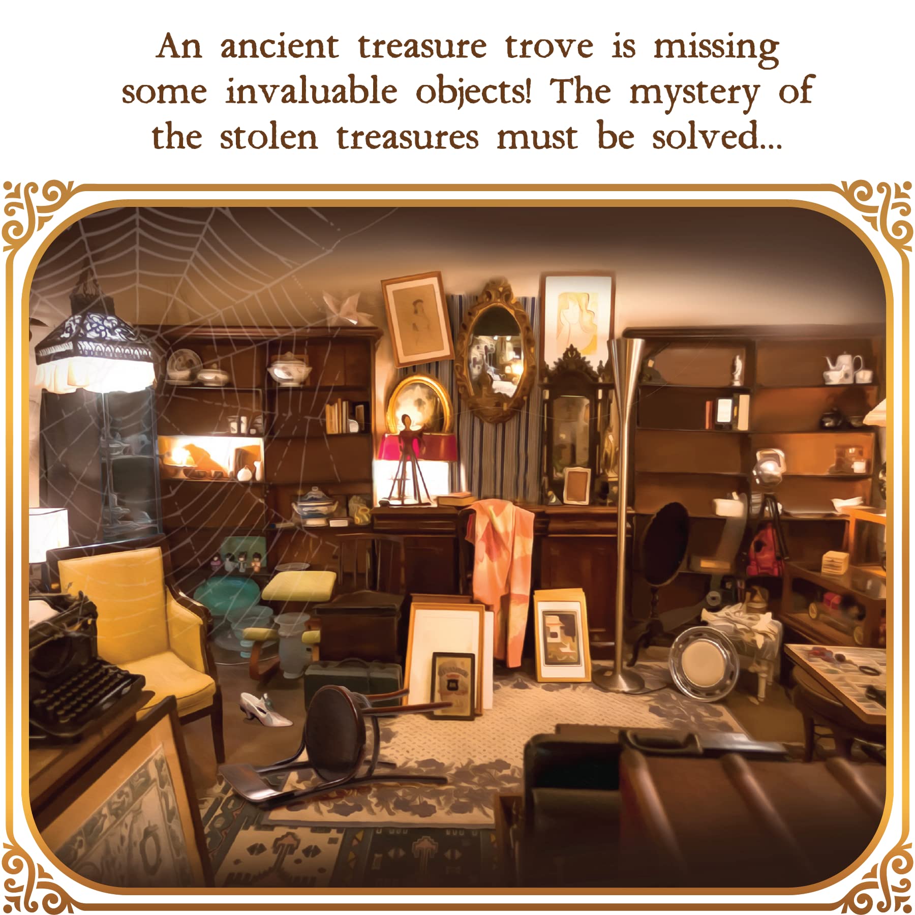 An ancient treasure trove is missing some invaluable objects! The mystery of the stolen treasures must be solved..Which treasures are missing? Who stole them? How did the crook escape?.. Can you be the first one to solve the mystery of the missing treasures?