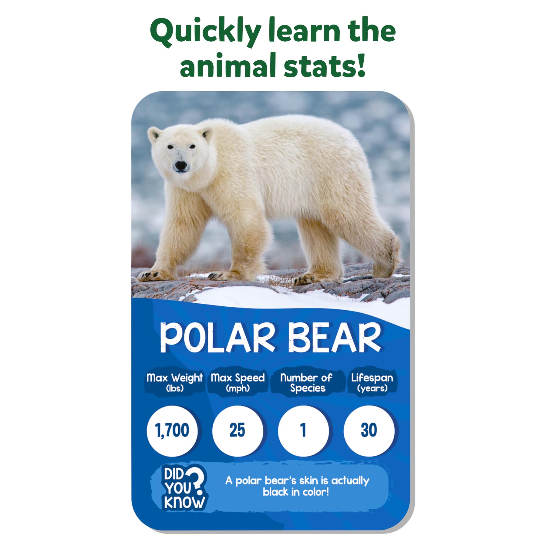 Did the die land on the little circle? Or the big one? - This determines whether youre competing for the highest or the lowest stat. You just have 20 seconds to memorize your cards and play the animal with the best stat! Compete to win the round for the fastest speed, lightest weight, longest lifespan, and more! In this game, your memory will be tested and your knowledge will be challenged. Collect the biggest stack of cards to win!