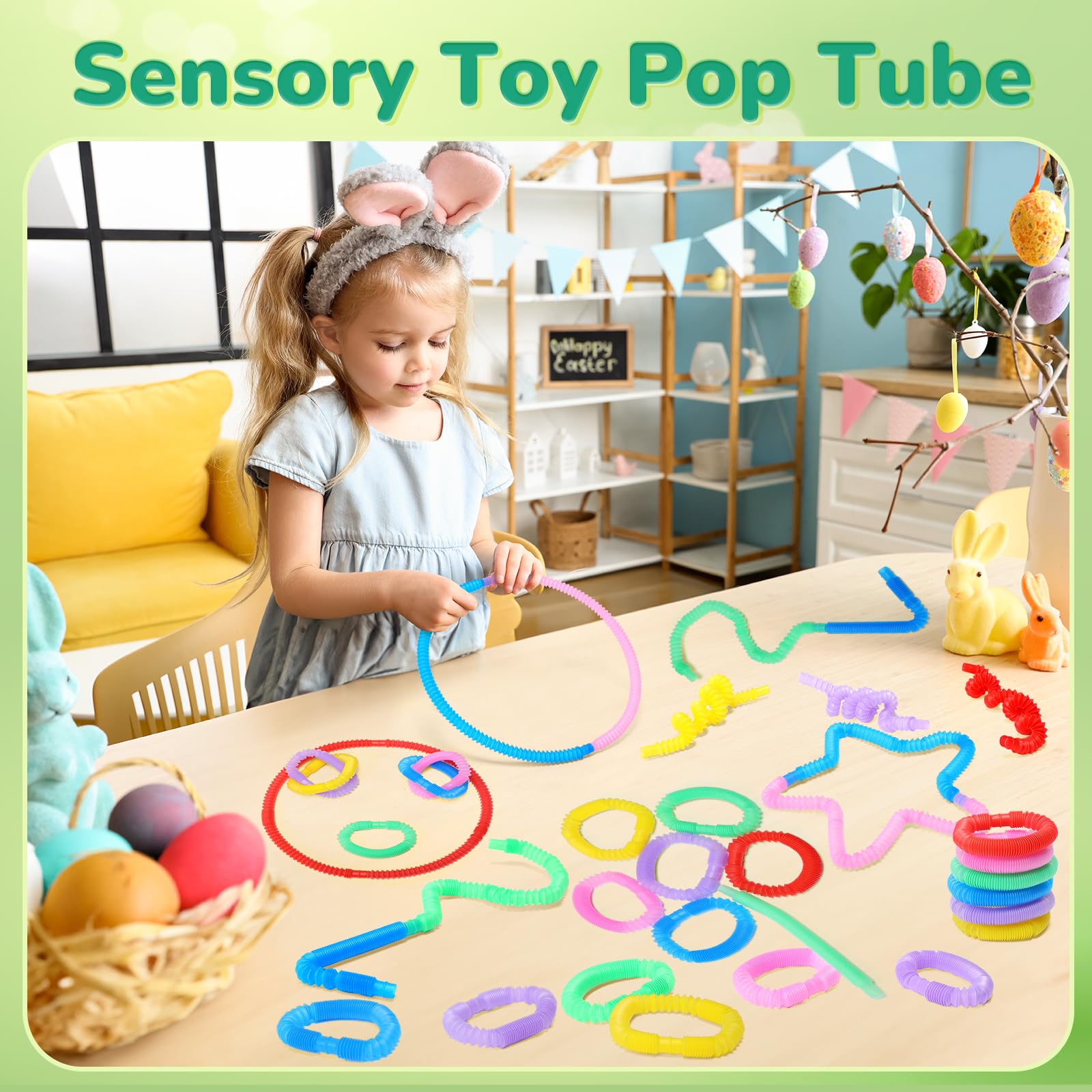 WHAT'S INCLUDED This Filled easter egg set includes 12 easter eggs,24 colorful pop tubes, a popular sensory and creativity-boosting toy for toddler kids age 3 4 5 6 7 8. These engaging toys are perfect for stimulating kids