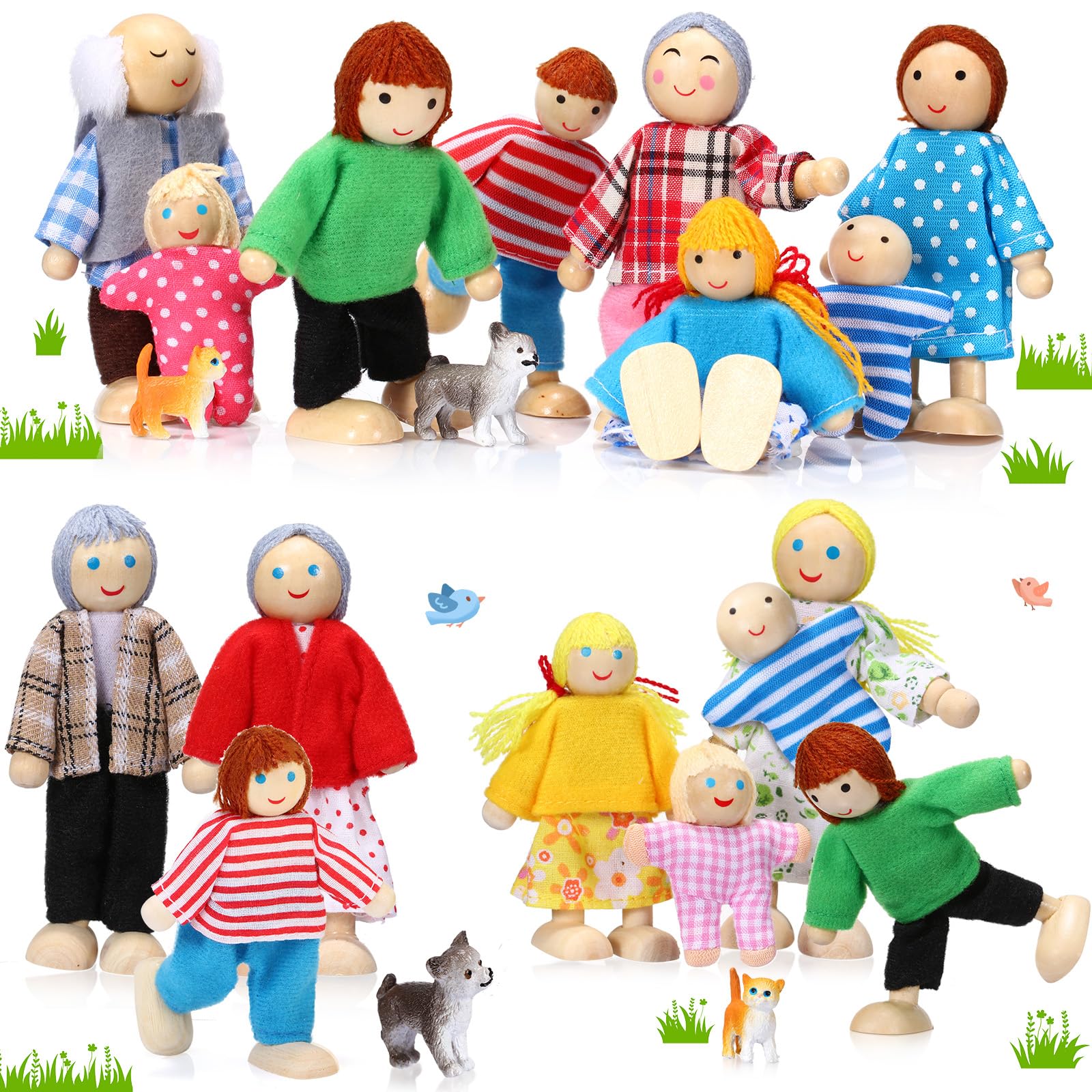 • Q: Are the dolls in the set movable? A: Yes, the mini wooden dollhouse figures have flexible limbs, allowing for movable hands and feet, so children can pose them in different positions such as sitting, standing, or bending.