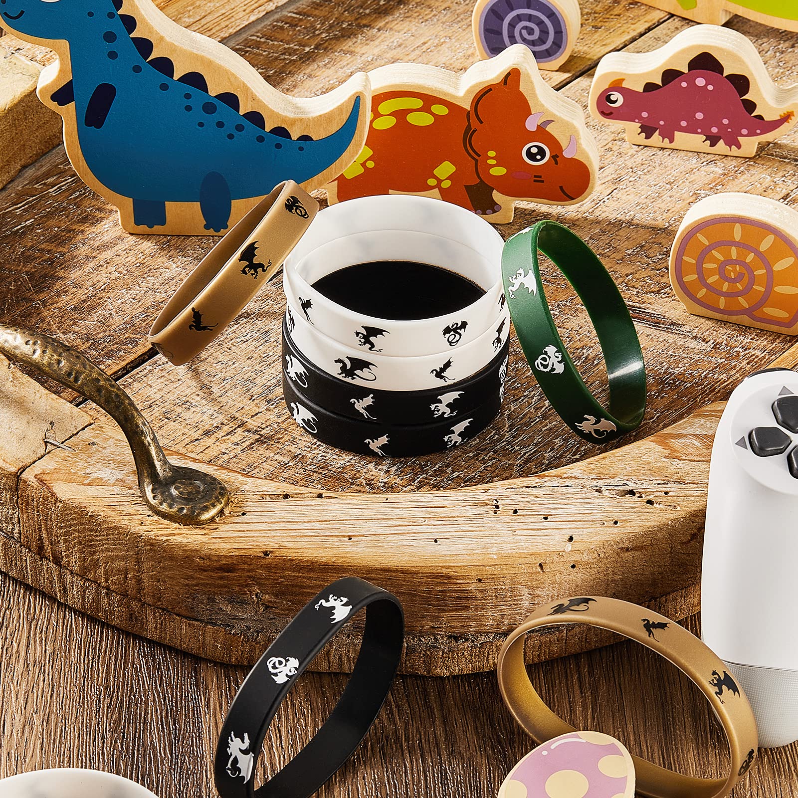 Skylety 24 Pieces Dragon Party Favors Dragon Themed Rubber Bracelets Silicone Wristbands Prints Rubber Bracelets Colored Stretch