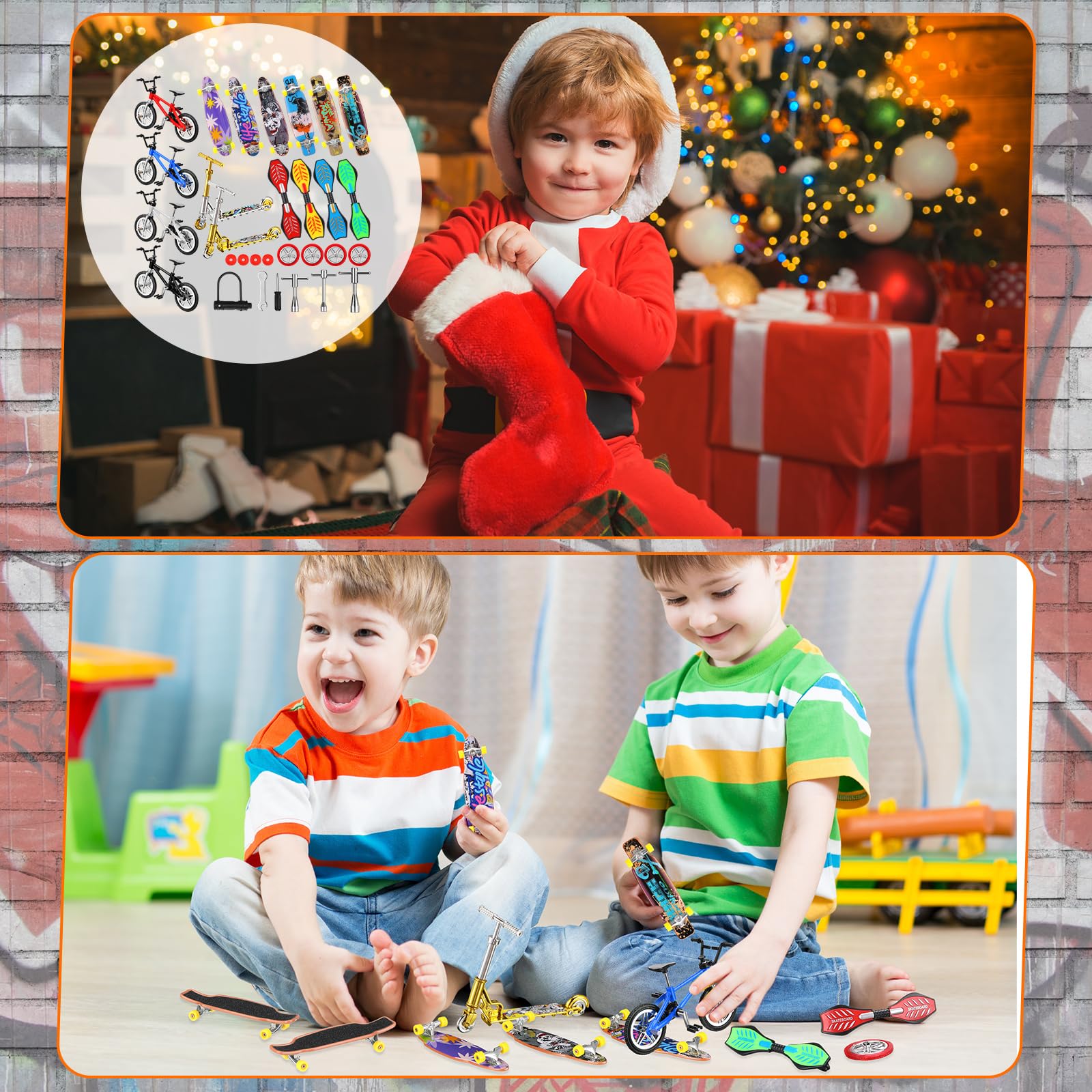 Skylety 31 Pieces Mini Finger Toys Set For Boy Girl Includes 6 Finger Skateboards, 4 Finger Bikes, 2 Mini Scooters 4 Swing Board 8 Matched Wheels 7 Tool Accessories Educational Toy Party Favor(Novel)